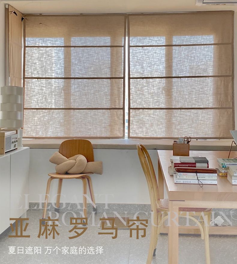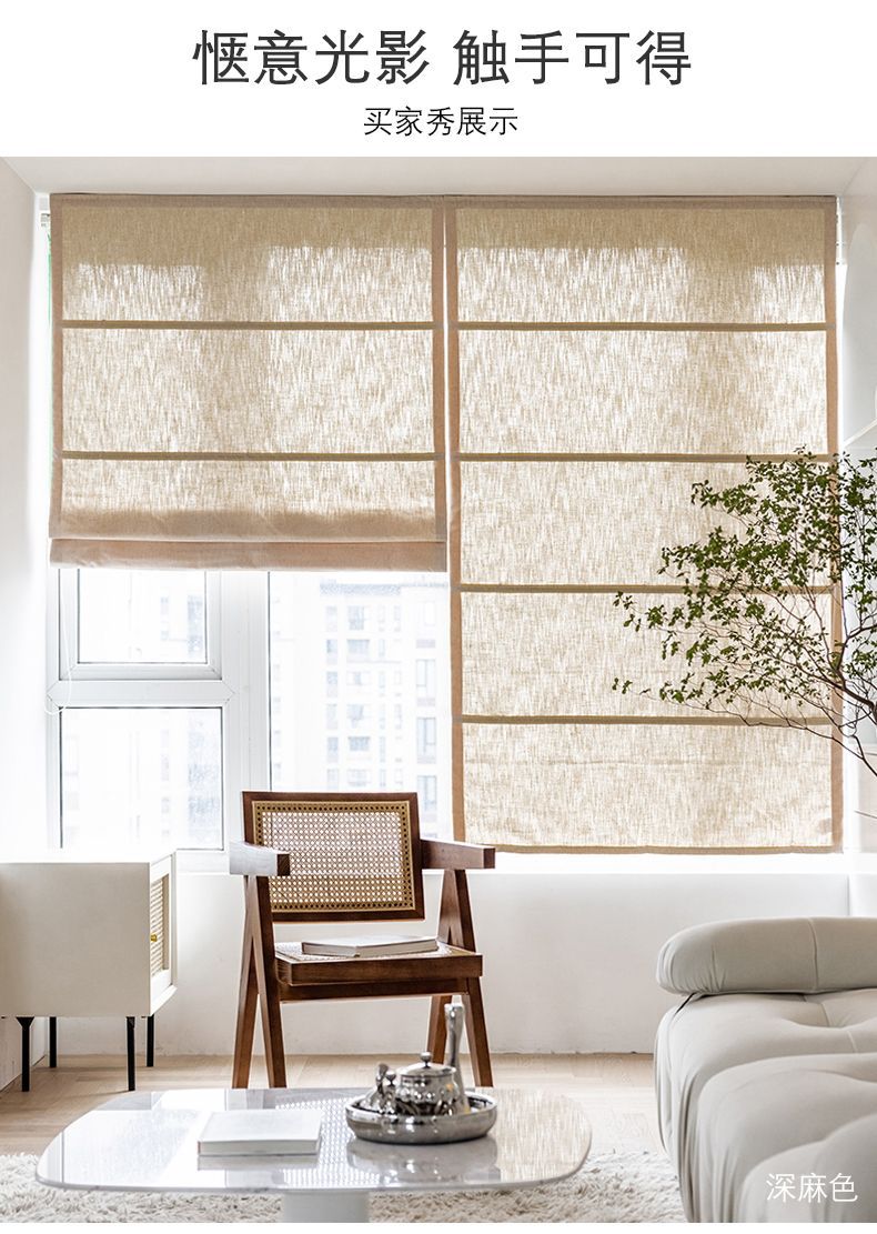 중국식 린넨 로마 커튼, 면 및 린넨 플로어 창 침실 리프팅 커튼, 블라인드, 반커버 커튼, 창문 바람막이스토어 가기