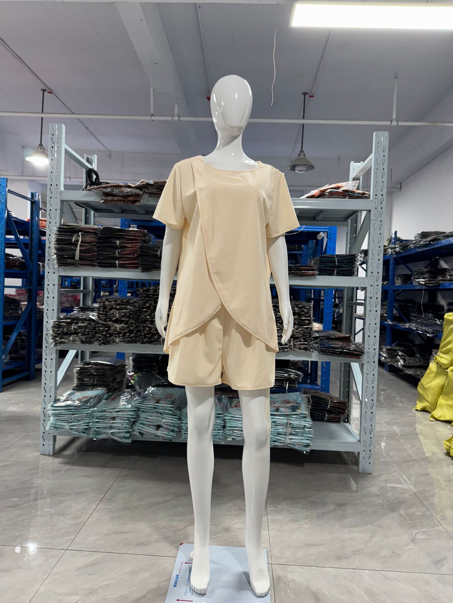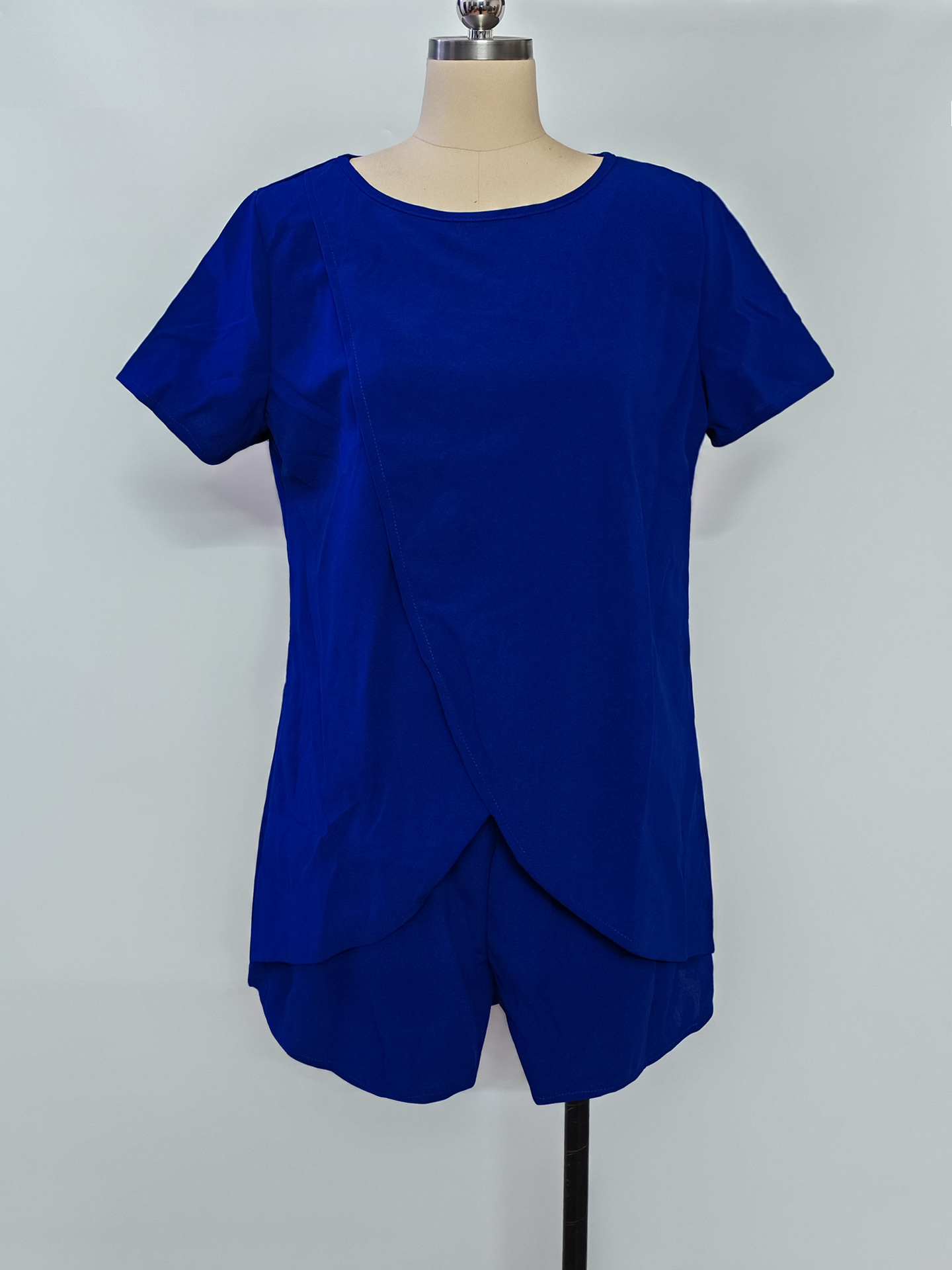 유럽과 미국의 국경 간 25년 아마존 봄 여름 신상 솔리드 컬러 여성 정장 불규칙 탑 반바지 투피스 세트스토어 가기