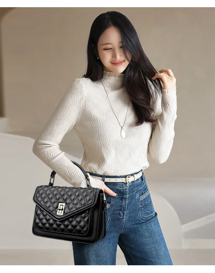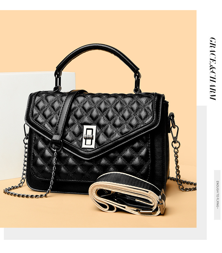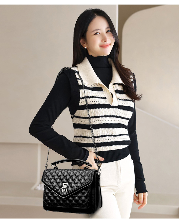2025 가을 신상 핸드백, 패셔너블하고 스타일리쉬한 넓은 어깨끈, 심플한 크로스백, 마름모 체인 스몰 스퀘어백