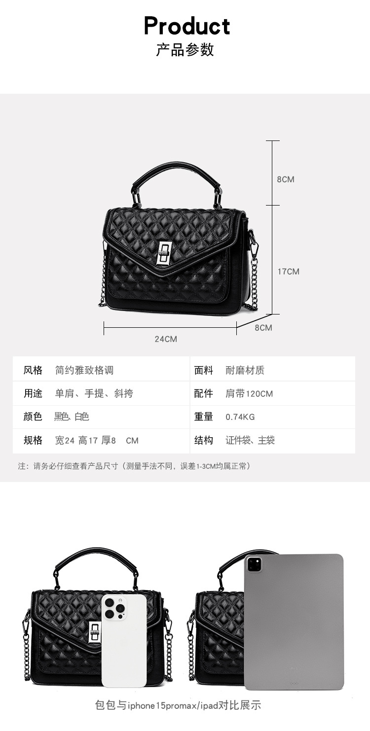 2025 가을 신상 핸드백, 패셔너블하고 스타일리쉬한 넓은 어깨끈, 심플한 크로스백, 마름모 체인 스몰 스퀘어백스토어 가기