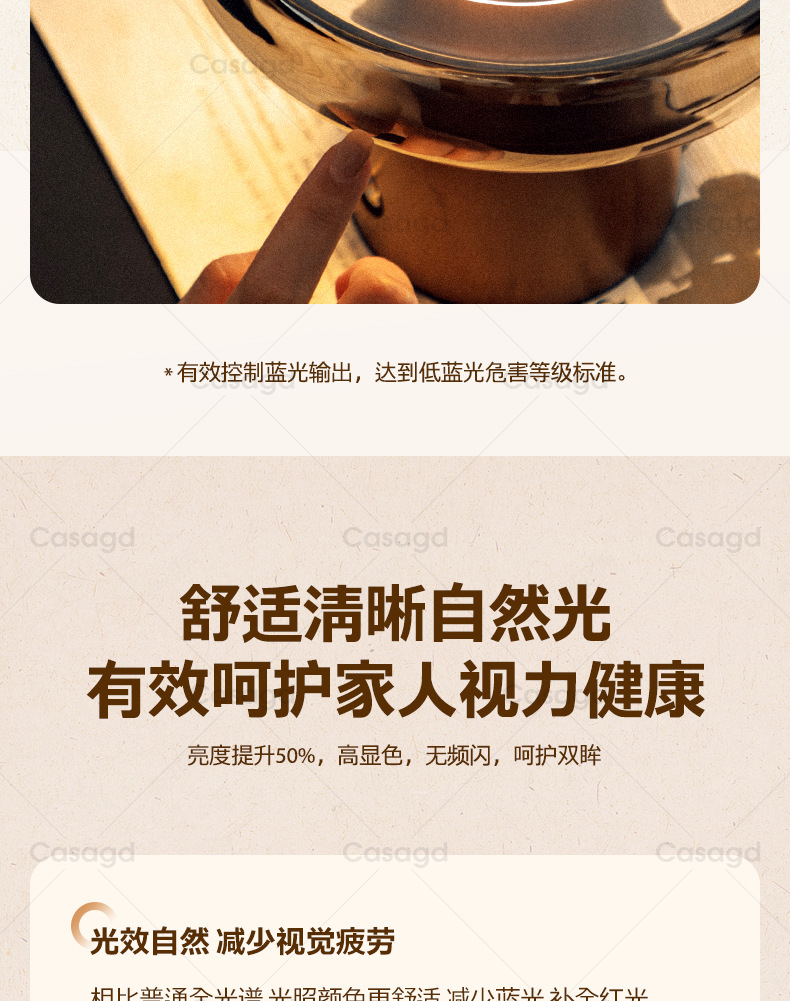 • 모델 B - 터치 충전 모델 - 호두색 + 코냑색 - 3색 조광 - 풀 스펙트럼 눈 보호
