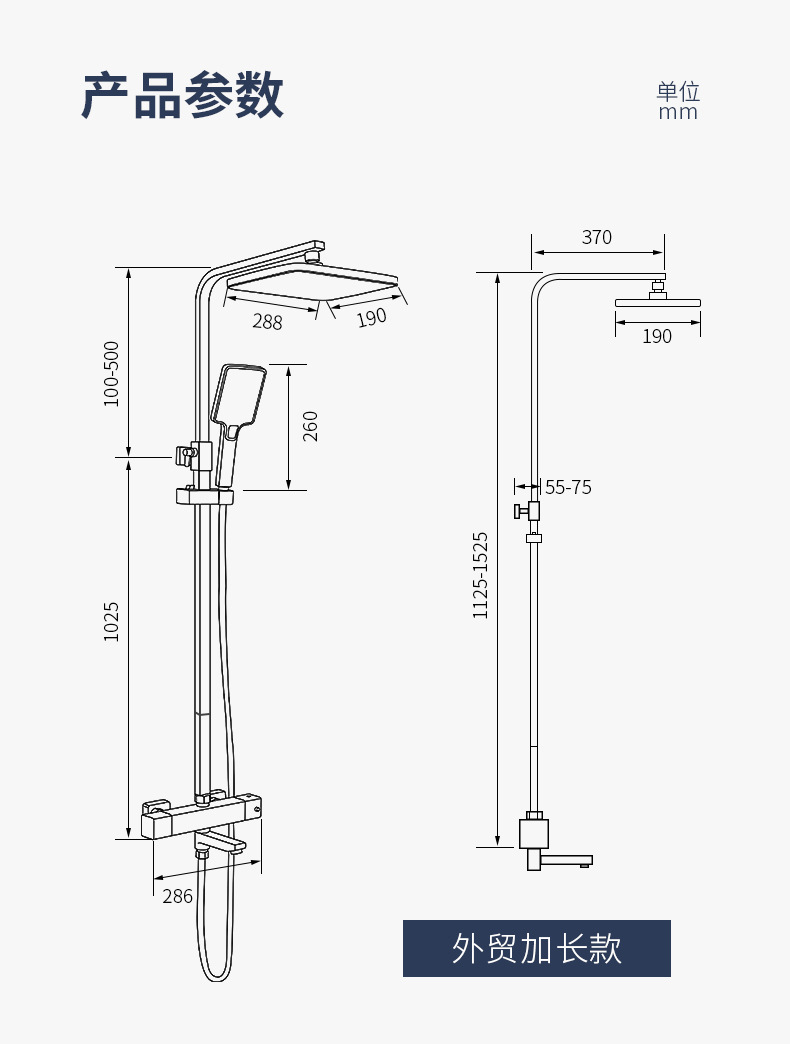 • D-1 건 그레이 2단 온도 조절 사각형 확장 리프팅 로드