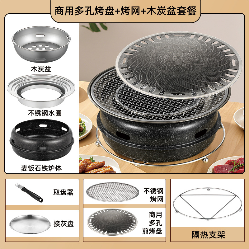 국경 간 새로운 상업용 한국식 숯불 그릴 야외 노점 식물성 기름 알코올 바베큐 그릴 무연 붙지 않는 프라이팬