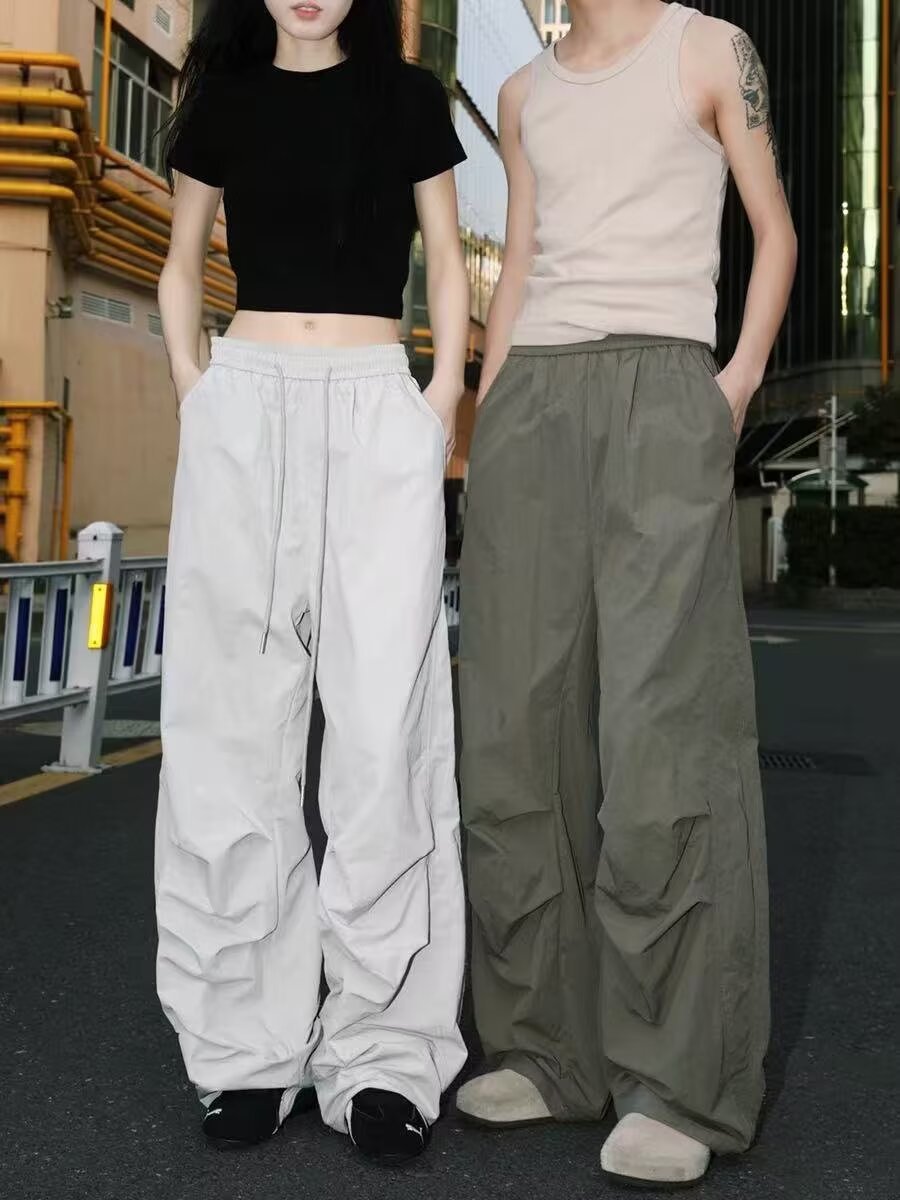 아메리칸 스타일 속건성 작업복 낙하산 바지 남성 여름 얇은 트렌디 아이스 실크 충전 바지 와이드 레그 루즈 스트레이트 캐주얼 바지