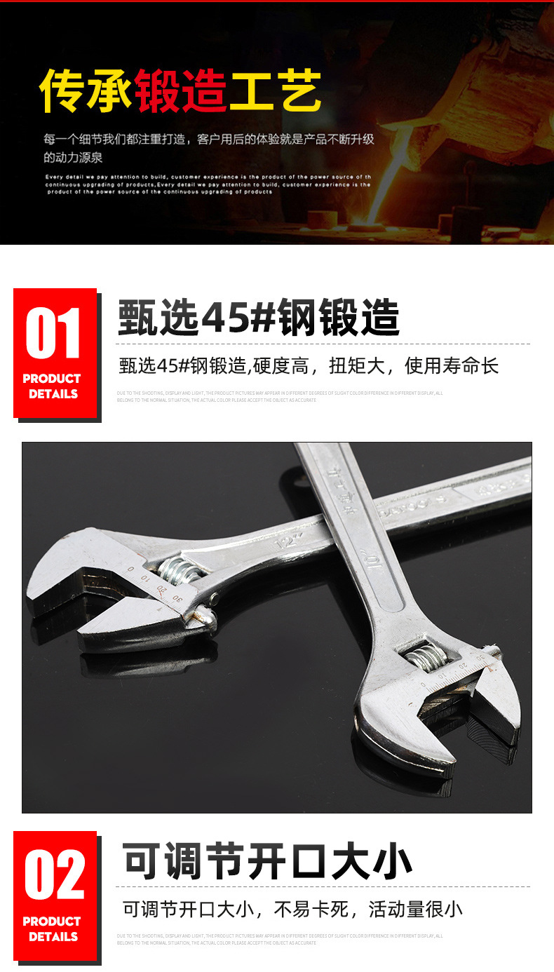 제조 업체 도매 10inch 가정용 욕실 자동 수리 렌치 용 라이브 렌치는 대형 오픈 엔드 렌치를 수동으로 조정할 수 있습니다.스토어 가기