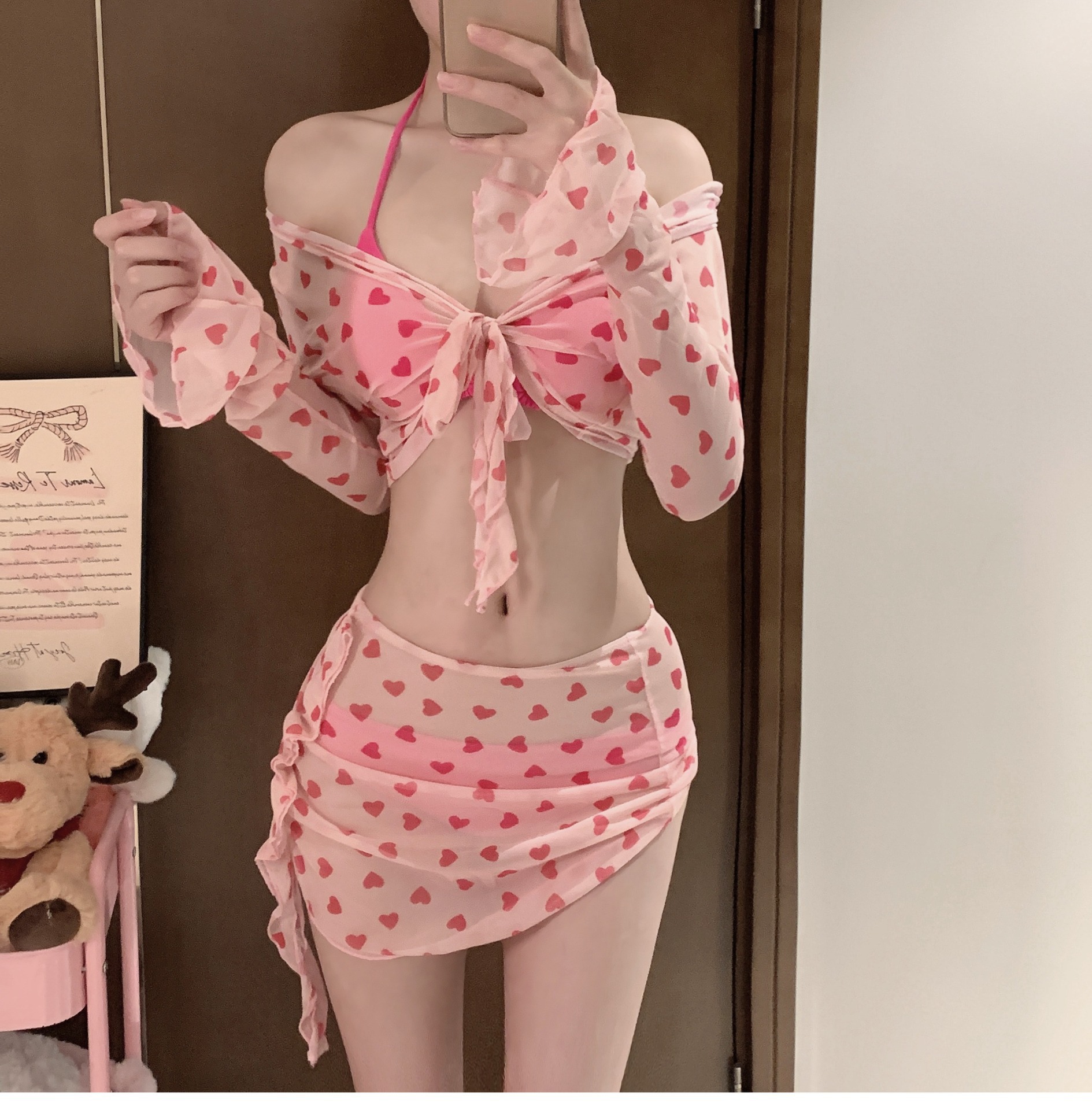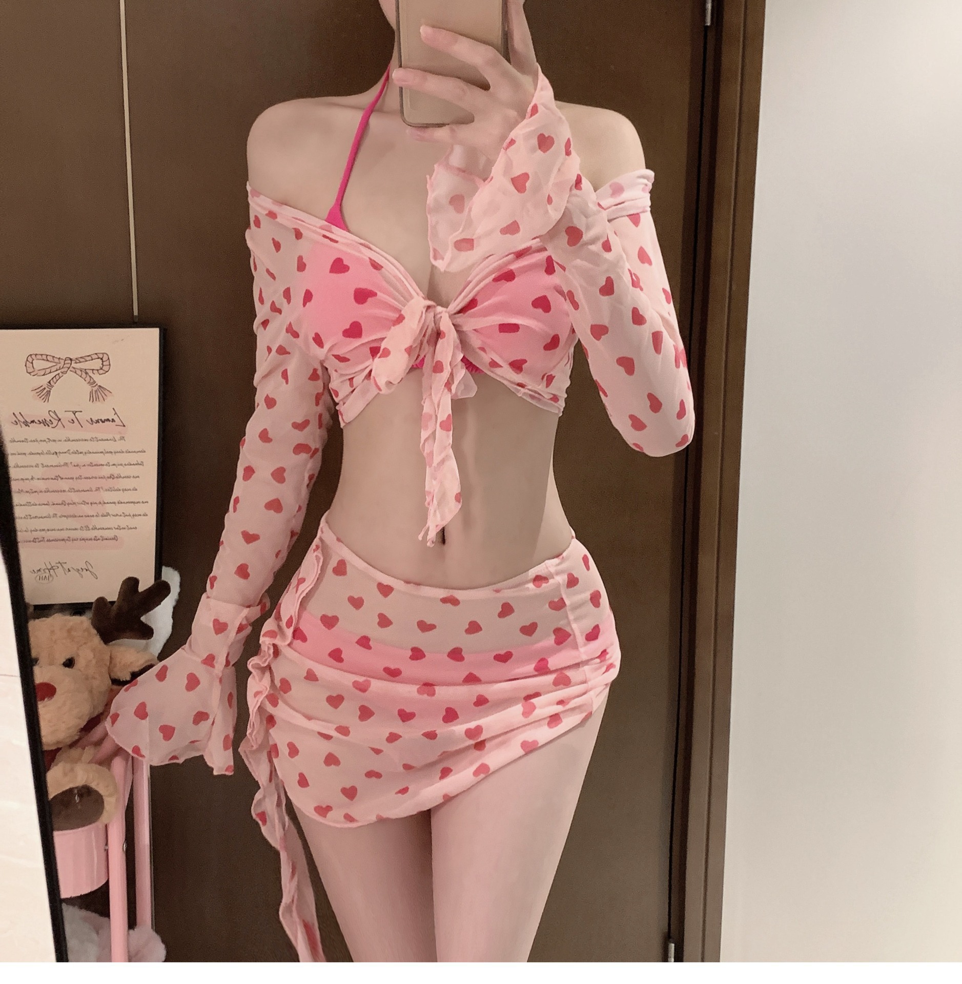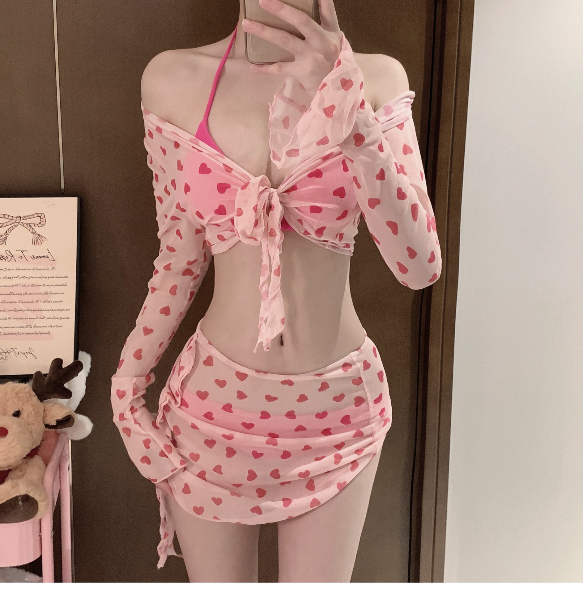 여성 수영복 비키니 슬림하고 섹시한 2026년 신상 패션 학생 소녀 휴가 작은 가슴 푸쉬업 온천 수영복 세트