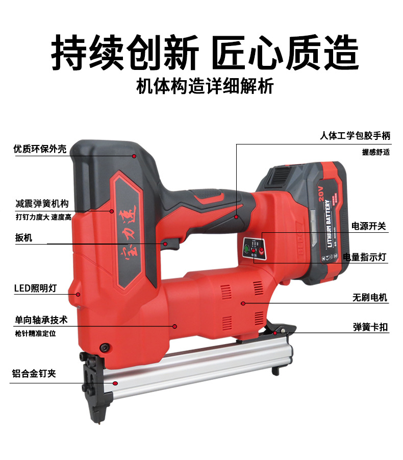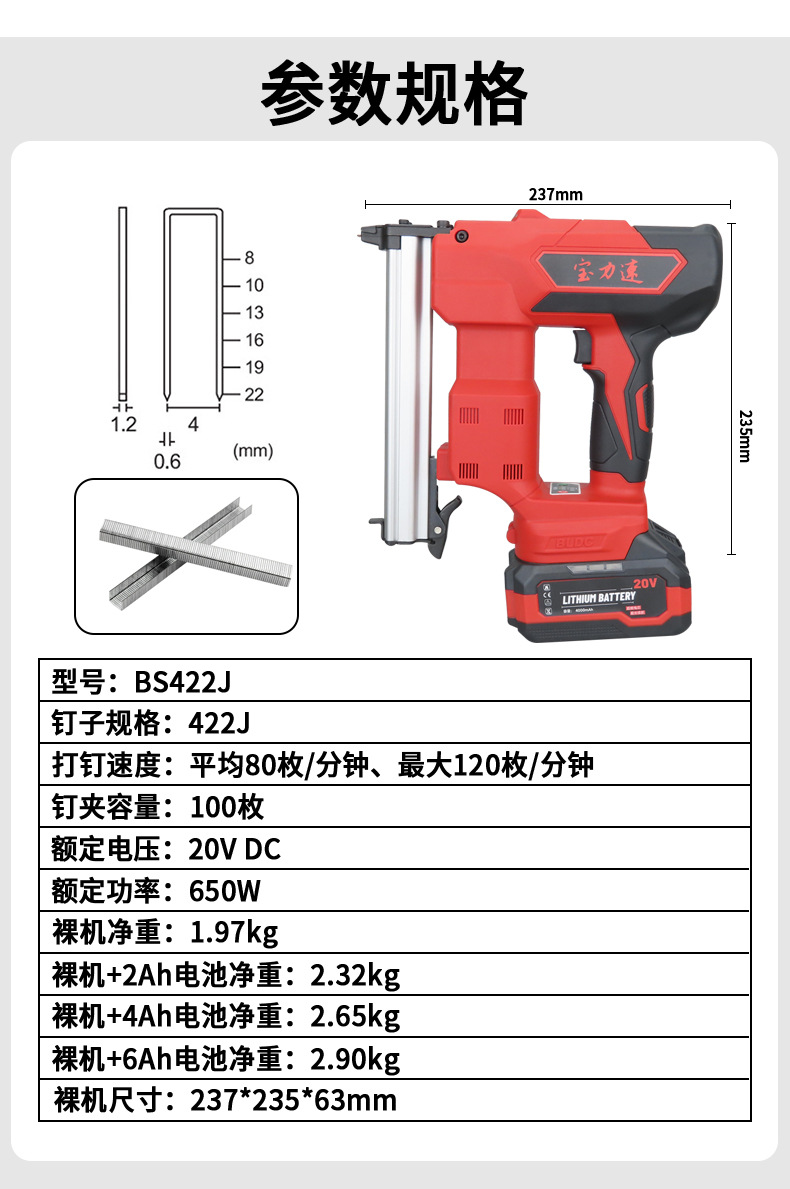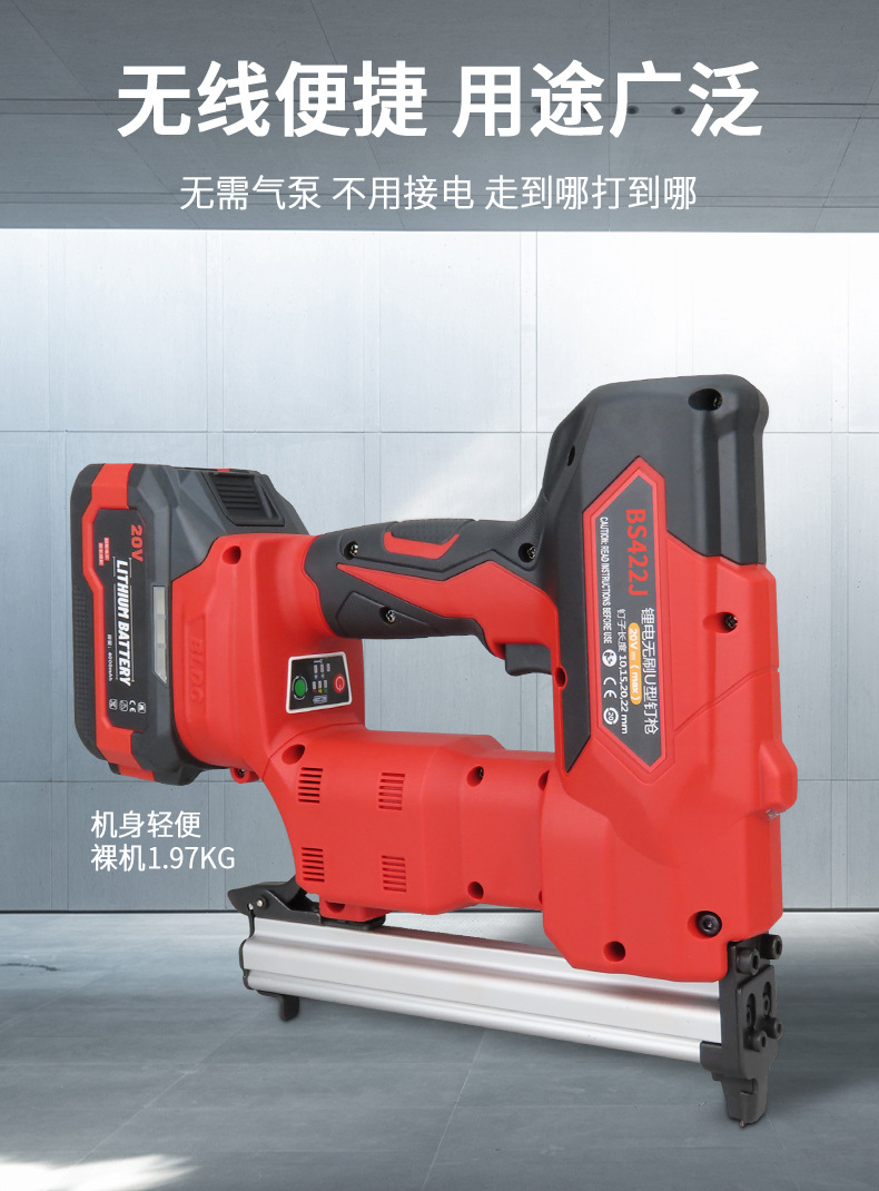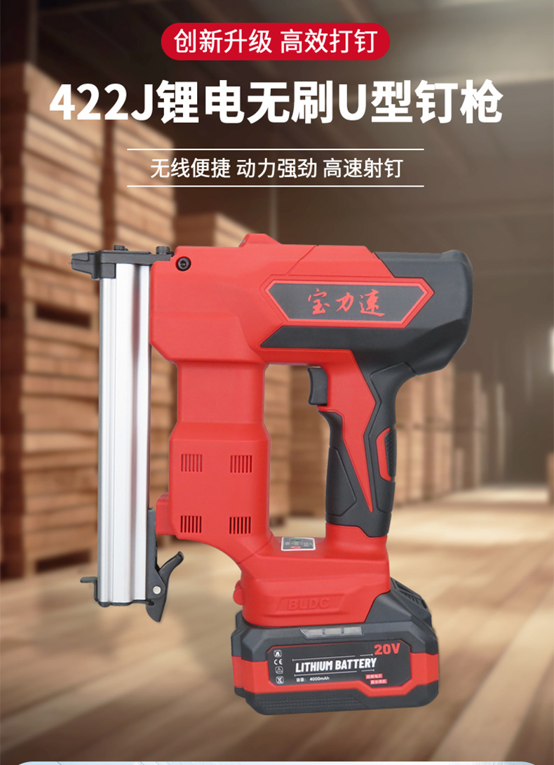 Baolisu 리튬 배터리 브러시리스 U 자형 네일 건 422J 코드 네일 건 충전식 목공 네일 건 네일 건 공장