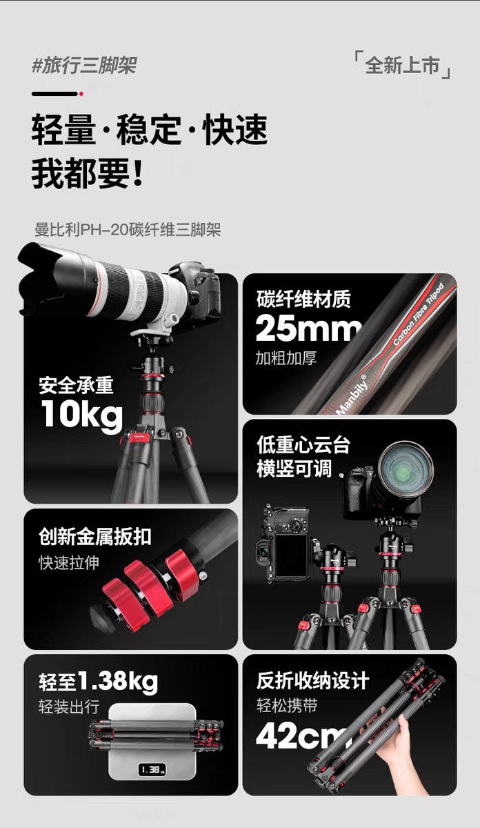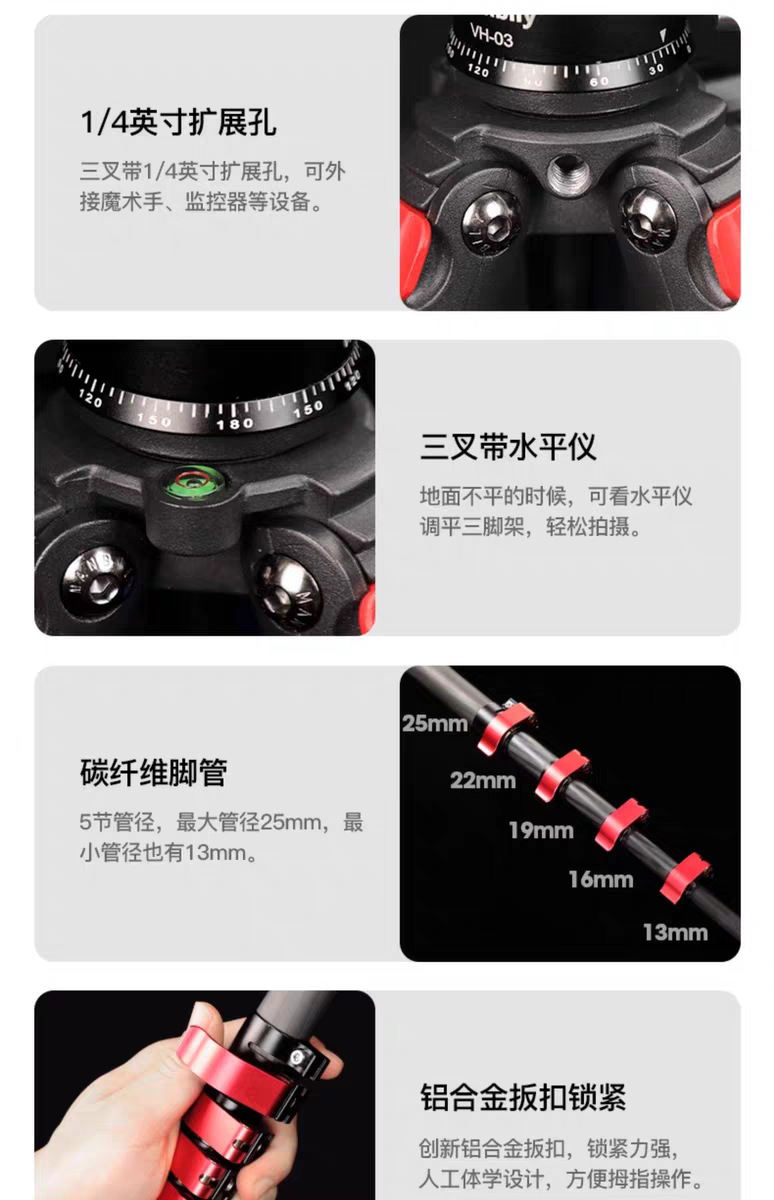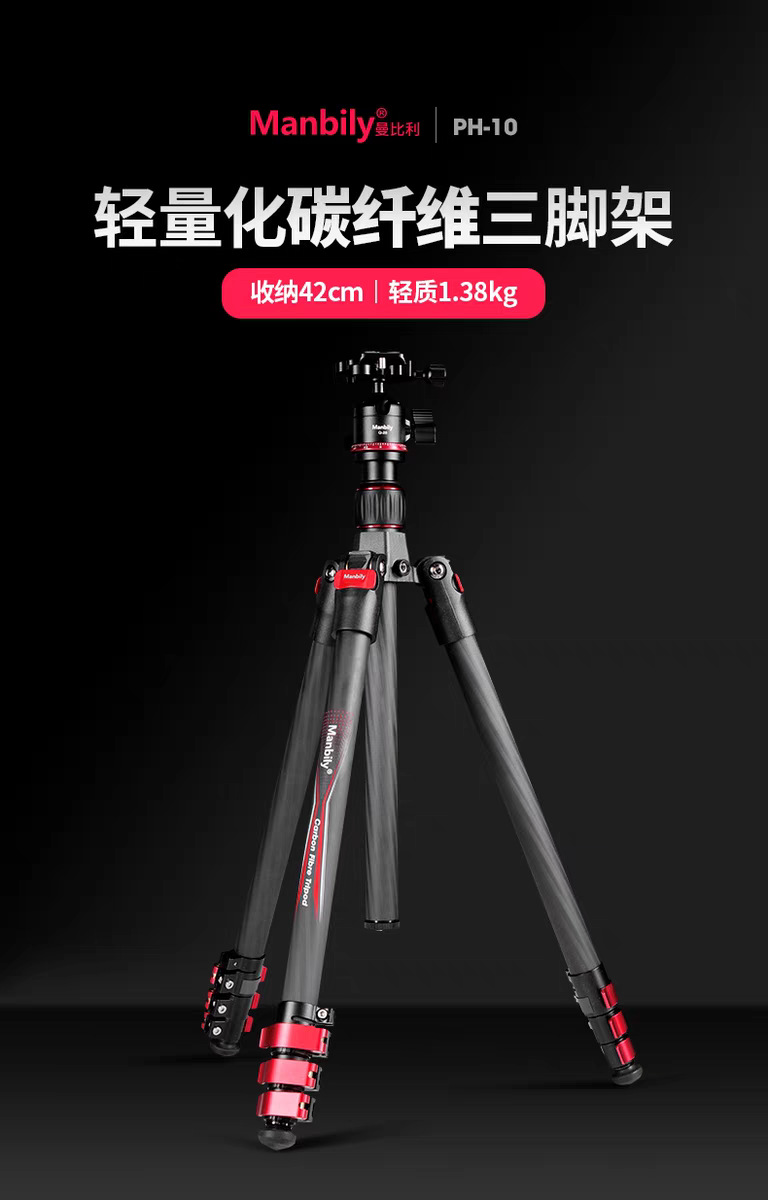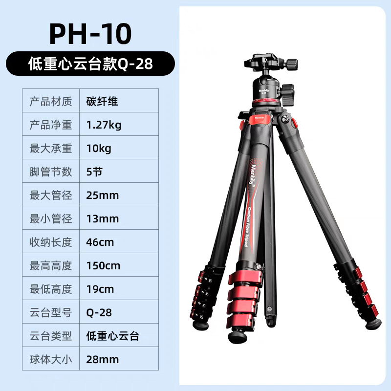 • 빨간색 PH-10 탄소 섬유 트리거 삼각대 + Q-28 저중심 볼 헤드