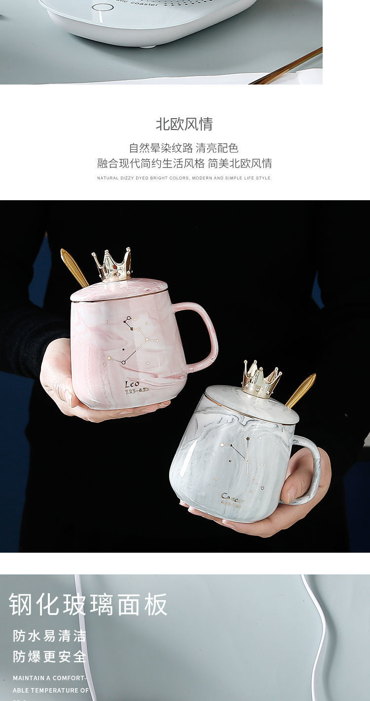 뚜껑과 스푼이 달린 고급스러운 세라믹 머그잔, 여학생을 위한 귀여운 컵, 홈 커피 컵, 대용량 물컵 공장스토어 가기