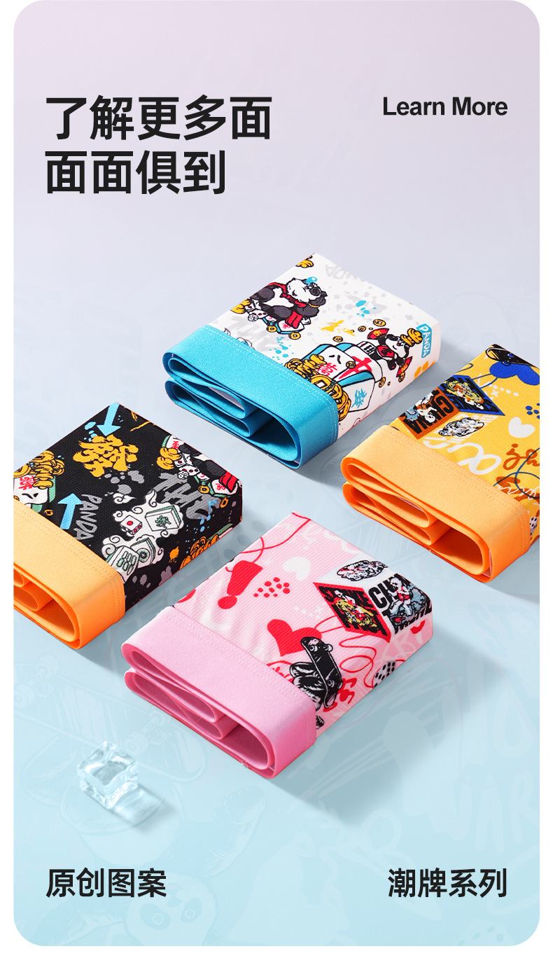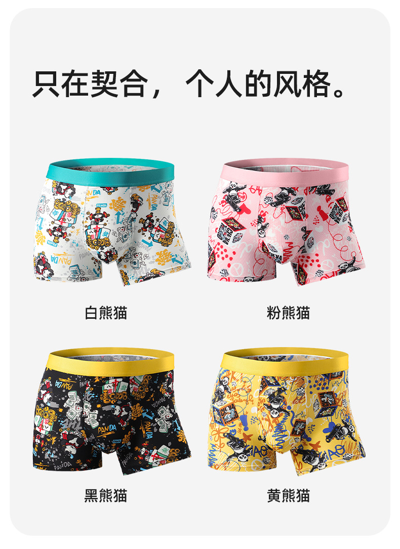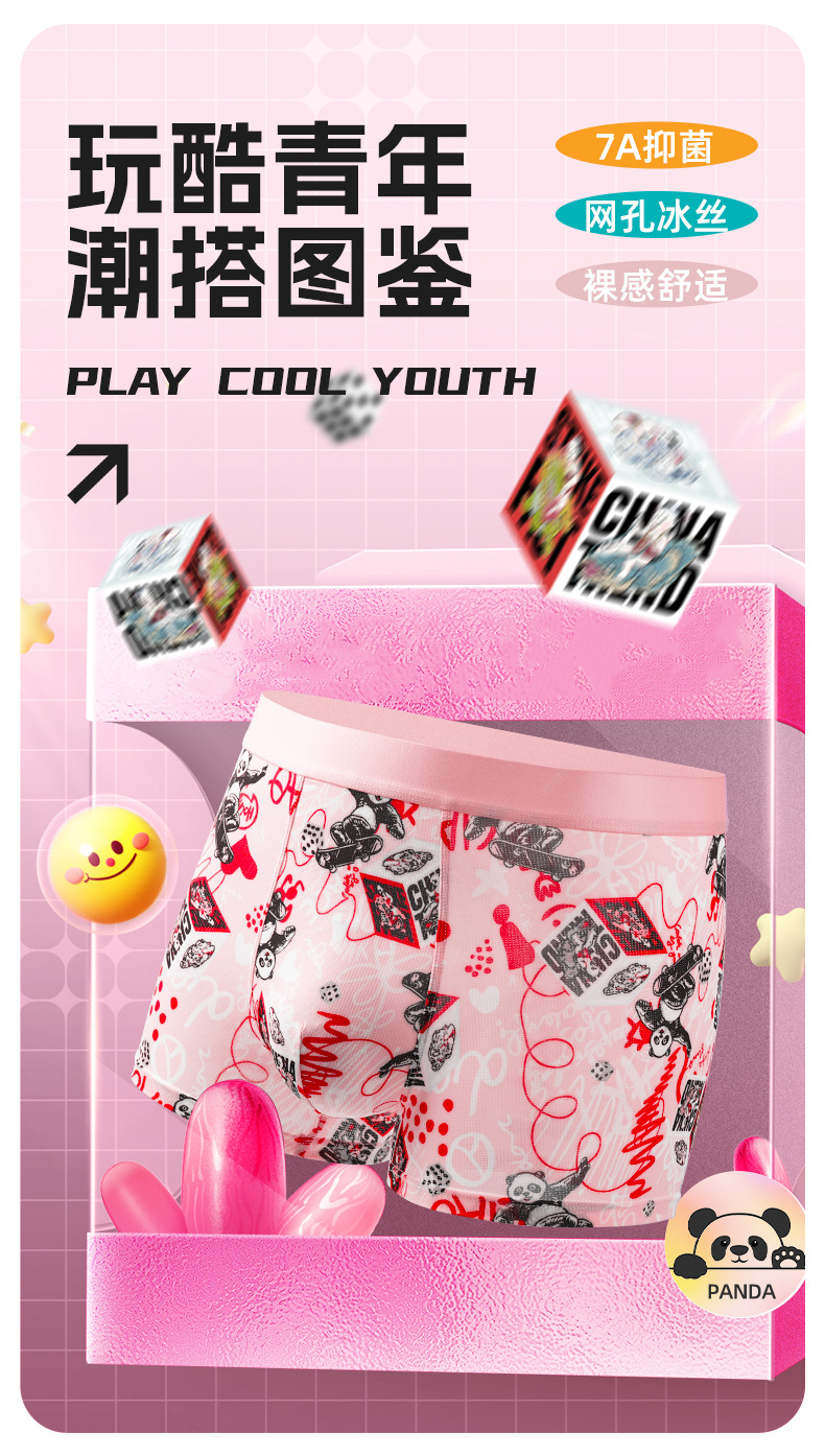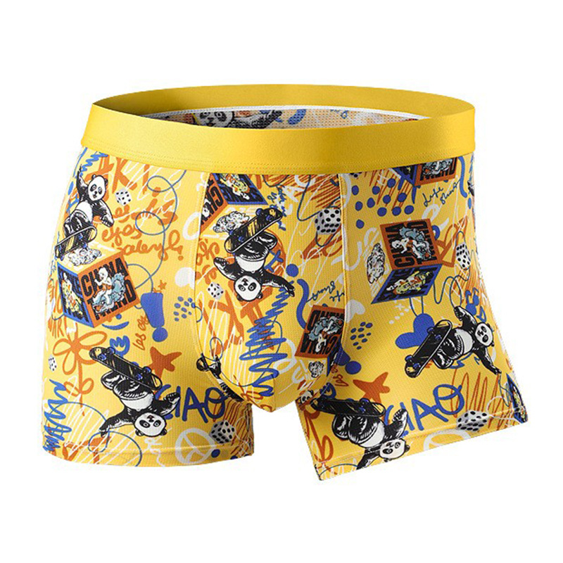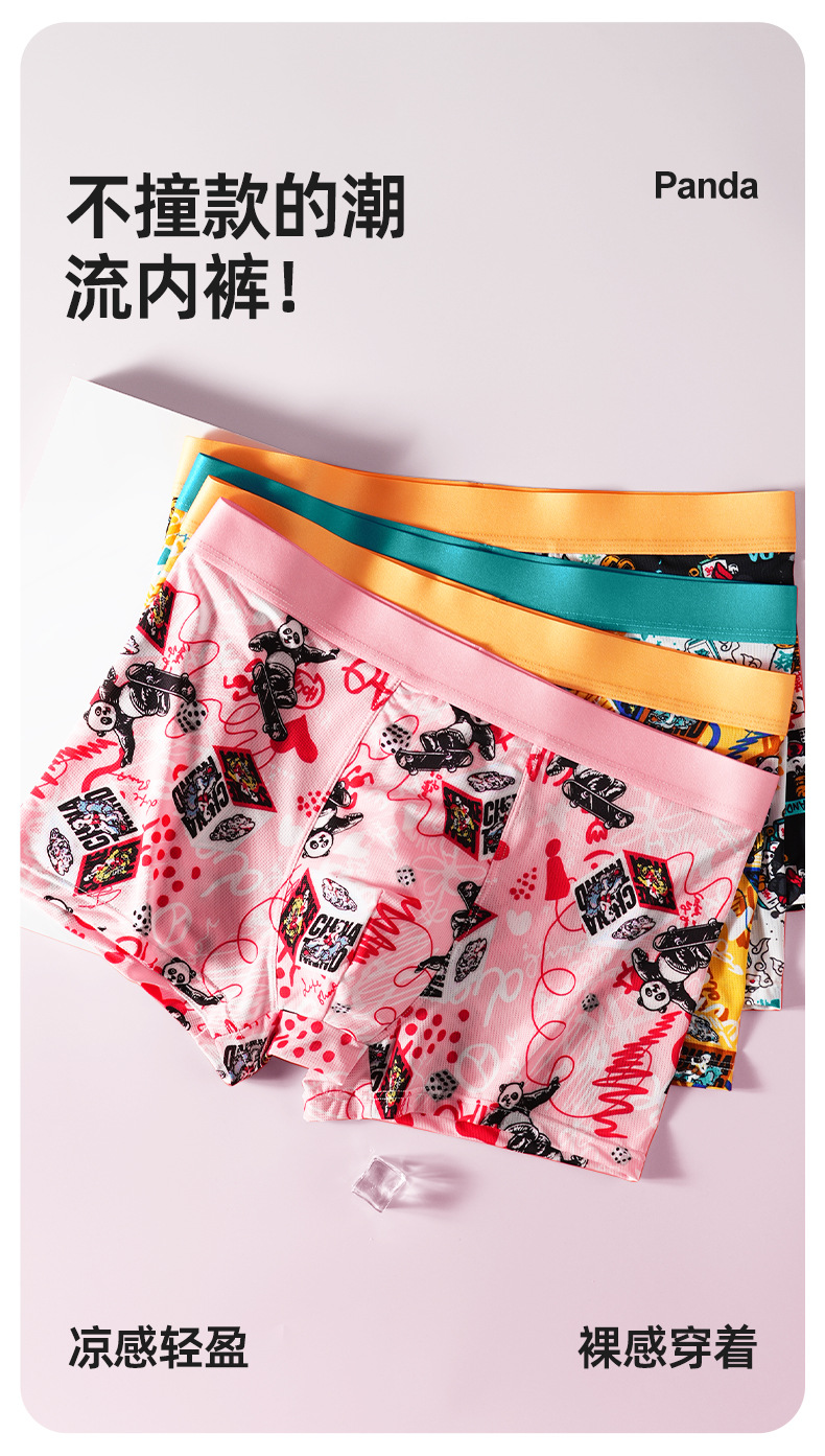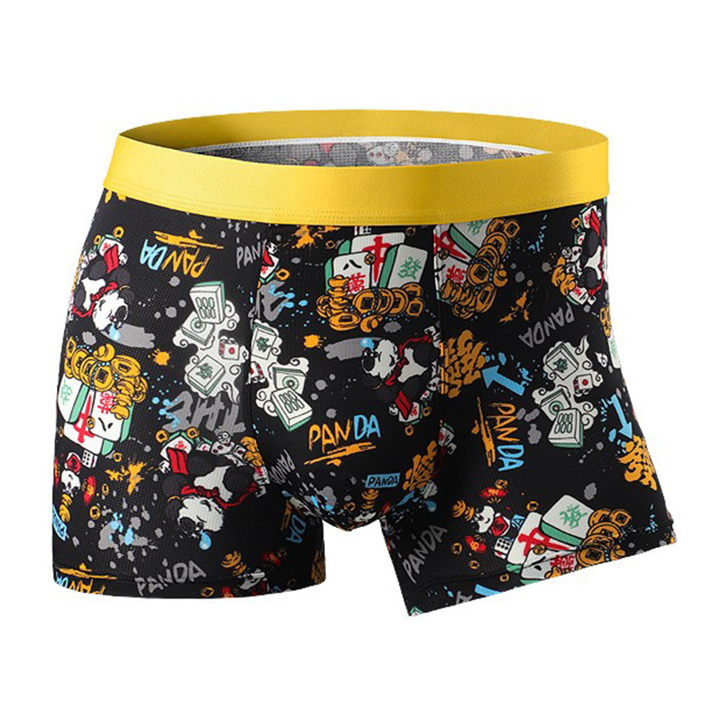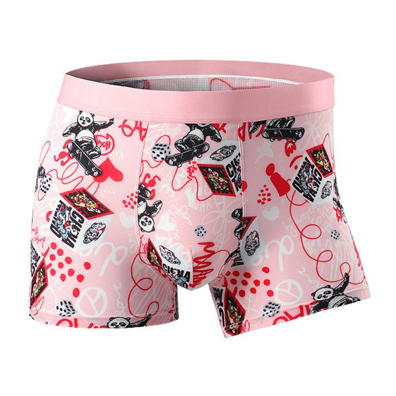 남성 속옷 아이스 메쉬 원피스 복서 팬티 7A 항균 가랑이 재미있는 팬더 프린트 남성용 복서 팬티