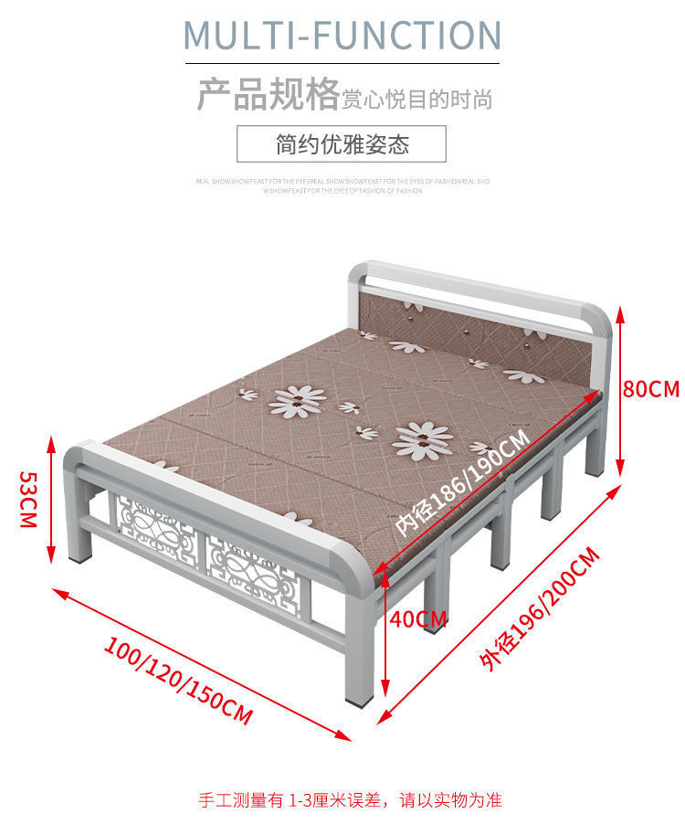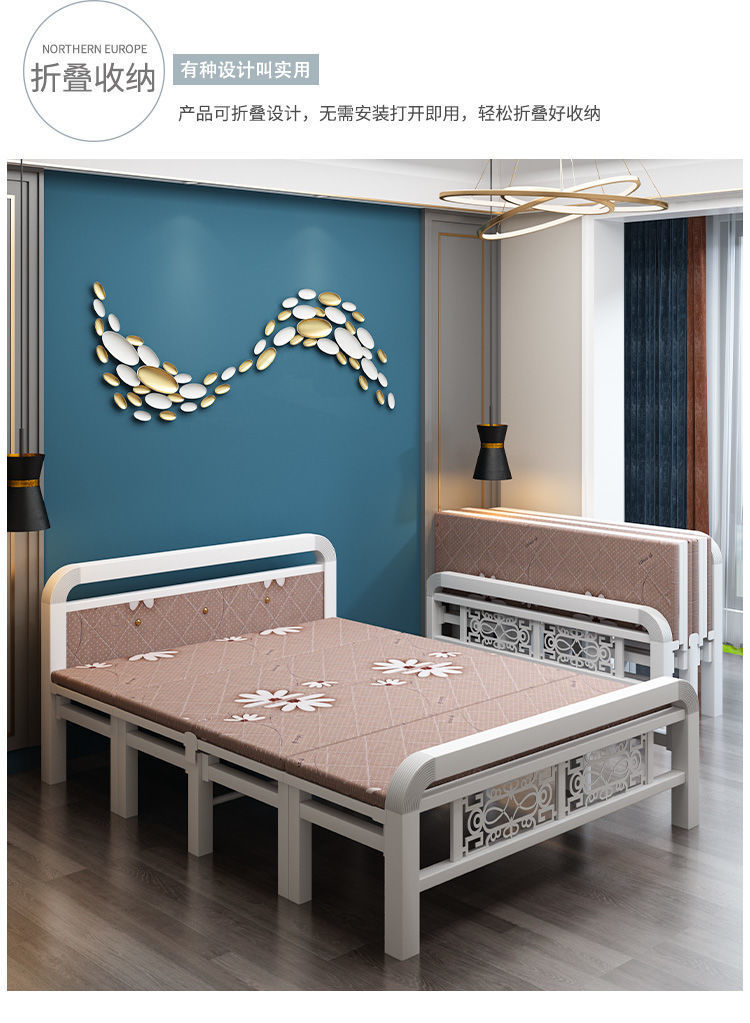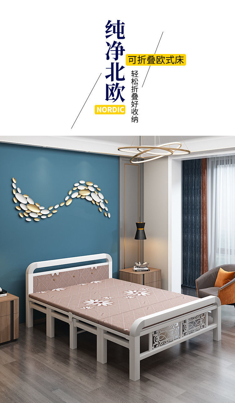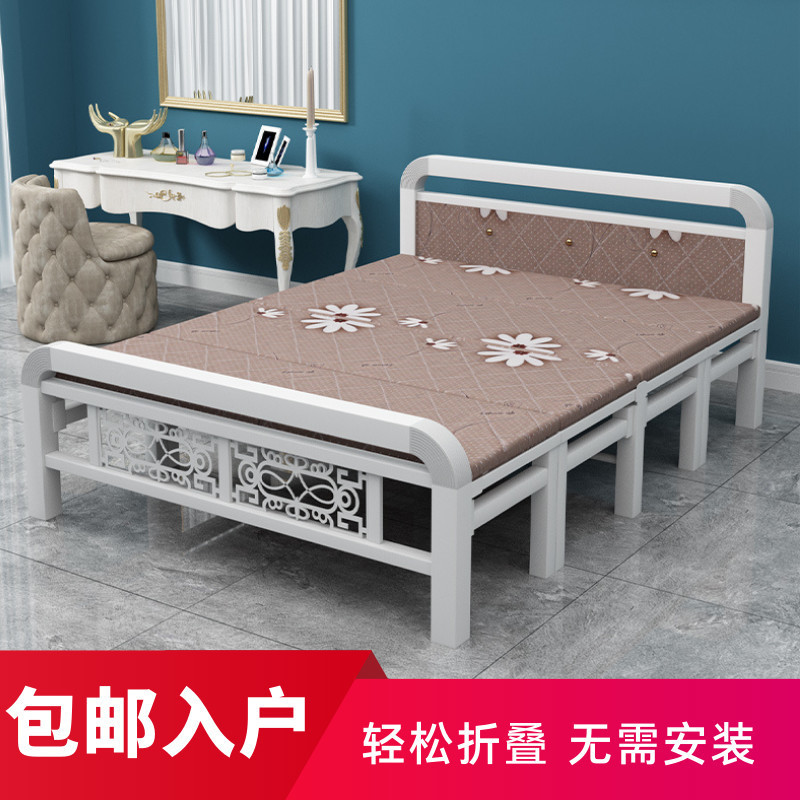 접이식 침대 점심 시간 침대 싱글 침대 더블 침대 성인 가정용 간단한 나무 침대 철제 침대 1.12m 1.5m스토어 가기