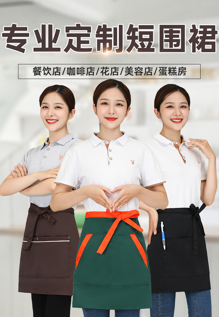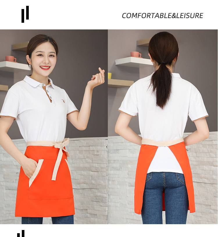 여성용 작은 앞치마, 하프 길이 프린트 로고, 한국식 패션 주방 앞치마, 레스토랑 작업복, 과일 가게 프린트스토어 가기