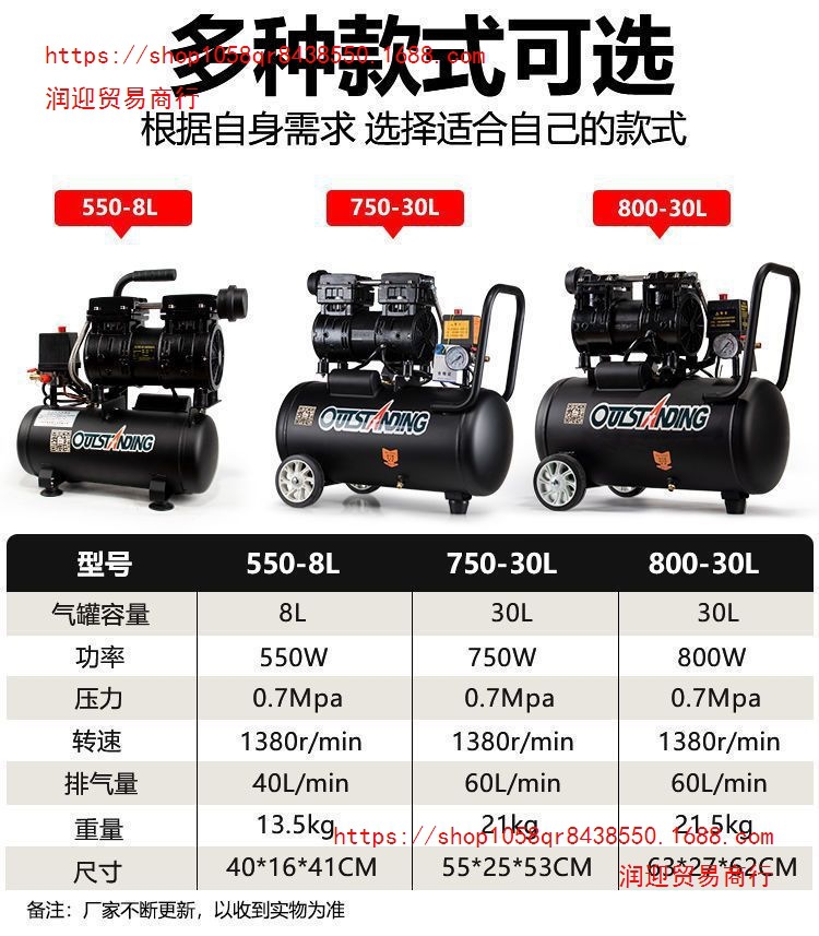 ATUS 공기 펌프 공기 압축기 소형 공기 압축기 풍선 오일 프리 자동 220V 목공 스프레이 페인트 공기 펌프