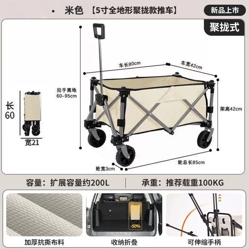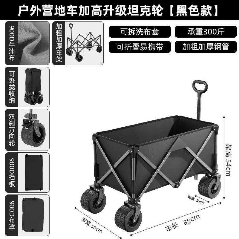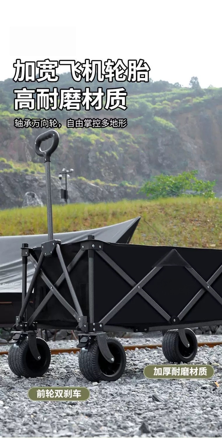 푸시형 캠핑 카트, 야외 캠프 트레일러, 여행용 핸드 푸시 피크닉 캠핑 트롤리, 소형 트롤리