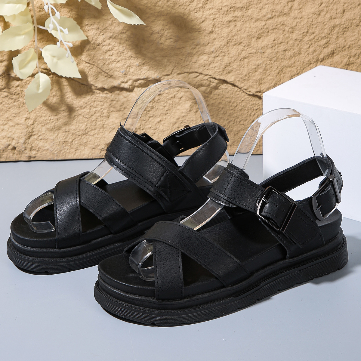 여성용 두꺼운 밑창 샌들, 여름용 부드러운 밑창, 편안하고 캐주얼한 아우터, 로마 샌들, 다용도 벨크로 크로스보더 대형 신발스토어 가기