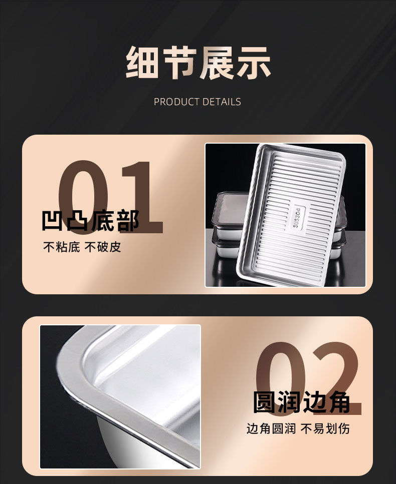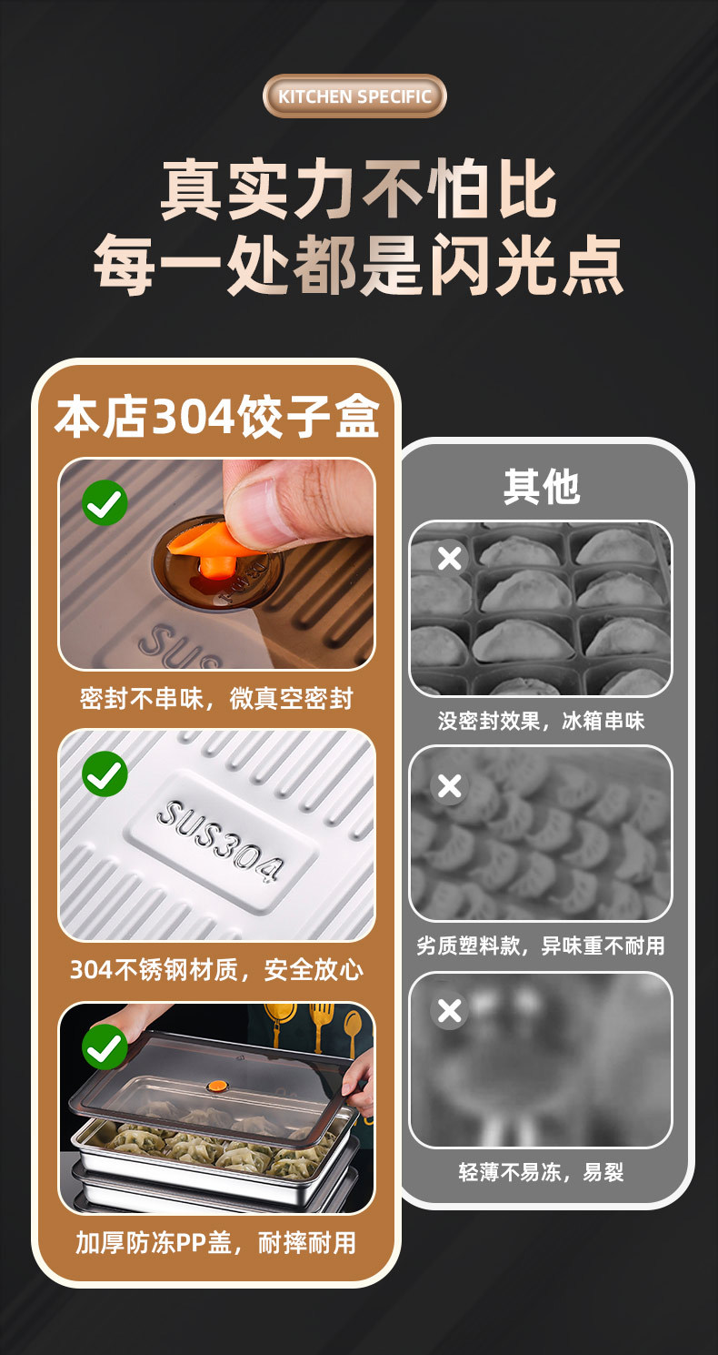 304 스테인레스 스틸 만두 상자 냉동 트레이 만두 트레이 냉장고 보관 상자 식품 등급 크리스퍼 야채 준비 트레이