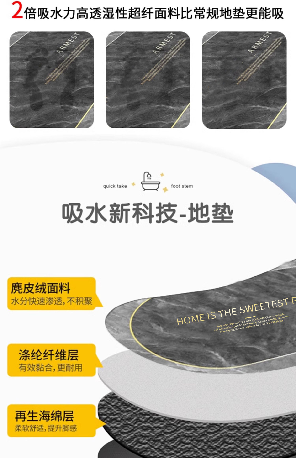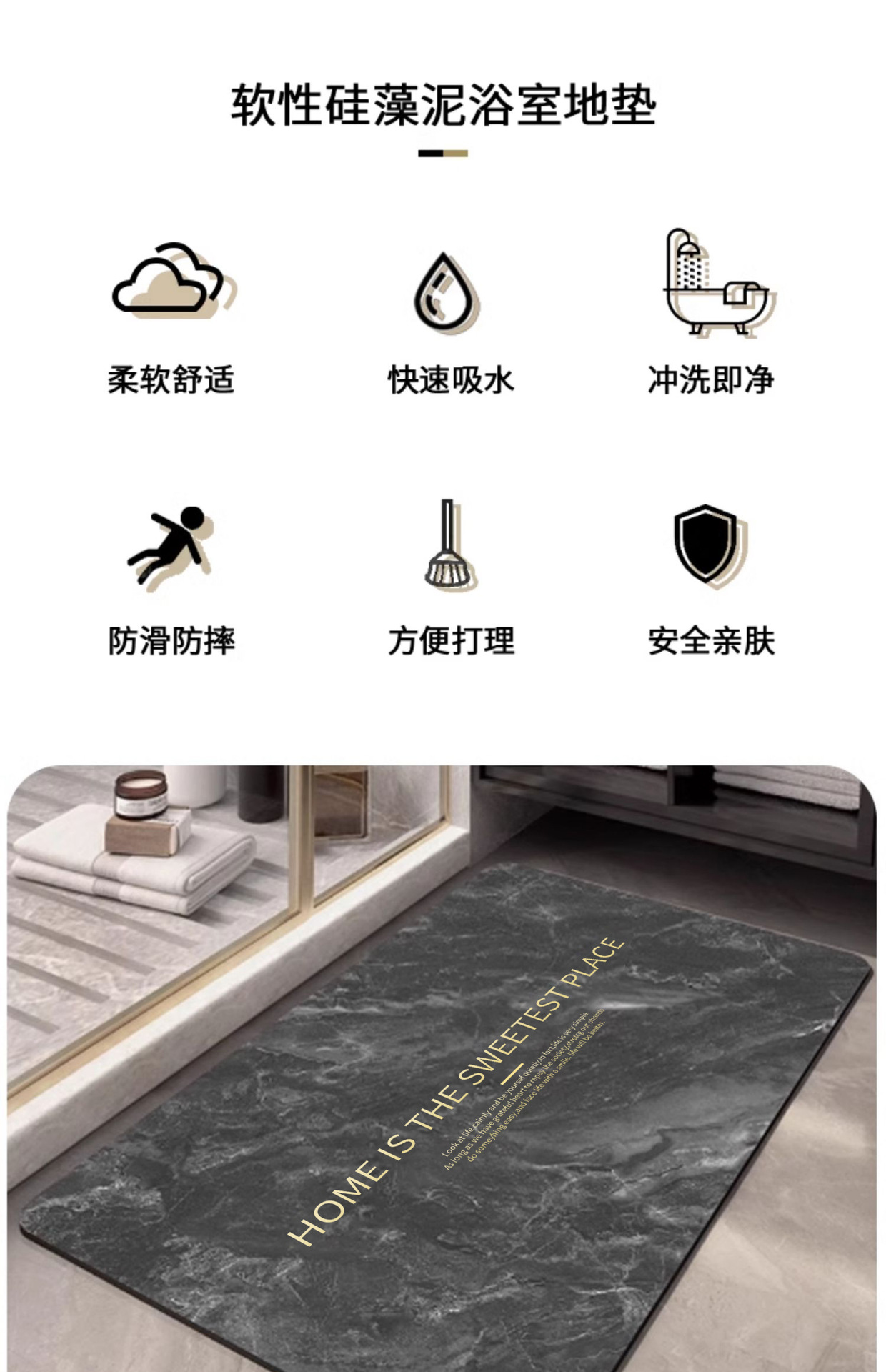 규조토 진흙 부드러운 욕실 흡수성 매트 대리석 주방 발 매트 흡수성 미끄럼 방지 바닥 매트 욕실 문스토어 가기