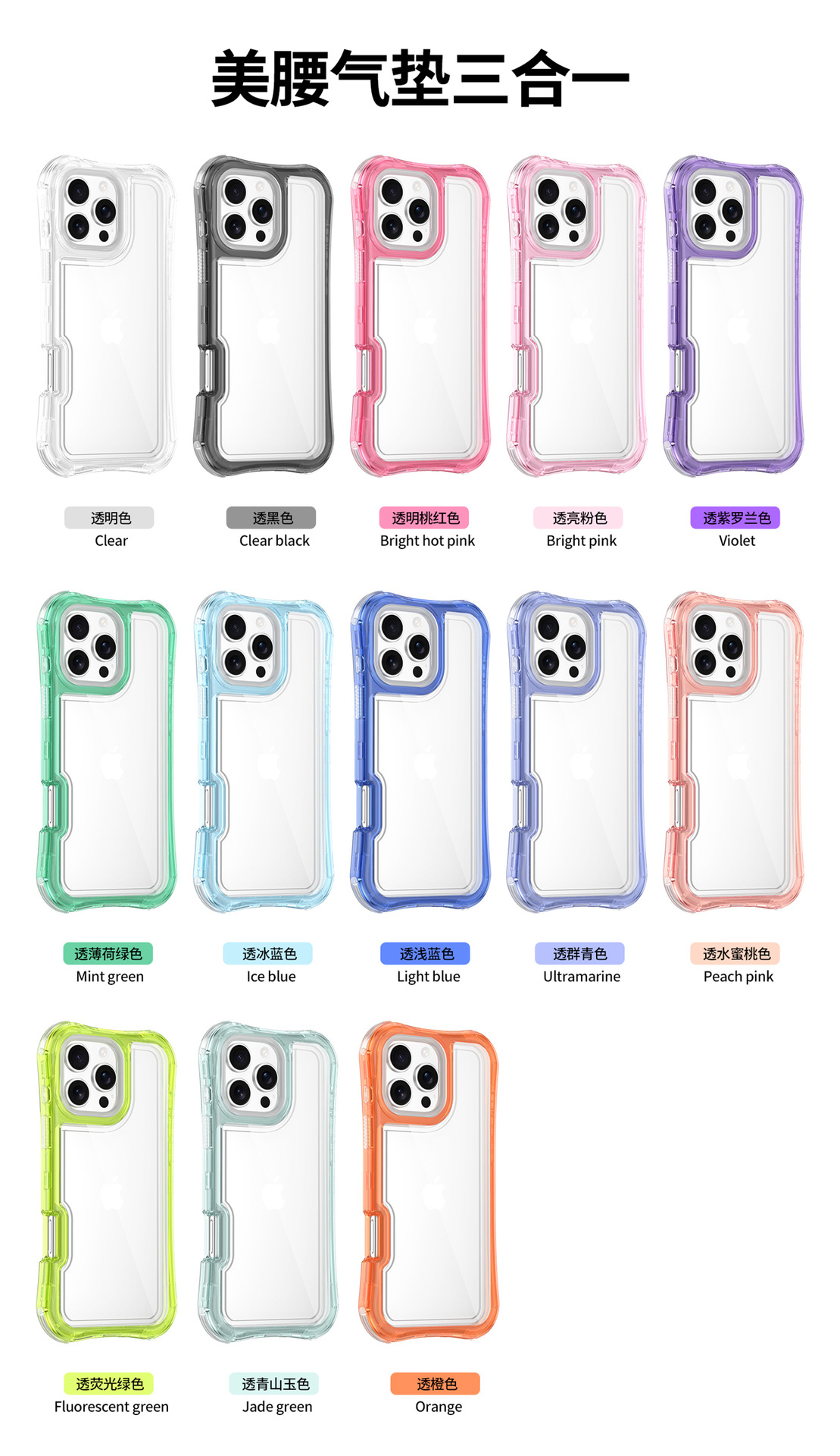 Aiwei의 새로운 남미 국경 간 인기 판매 IP 16 Pro max 아름다운 허리 3-in-1 에어 쿠션 360 낙하 방지 휴대폰 케이스스토어 가기