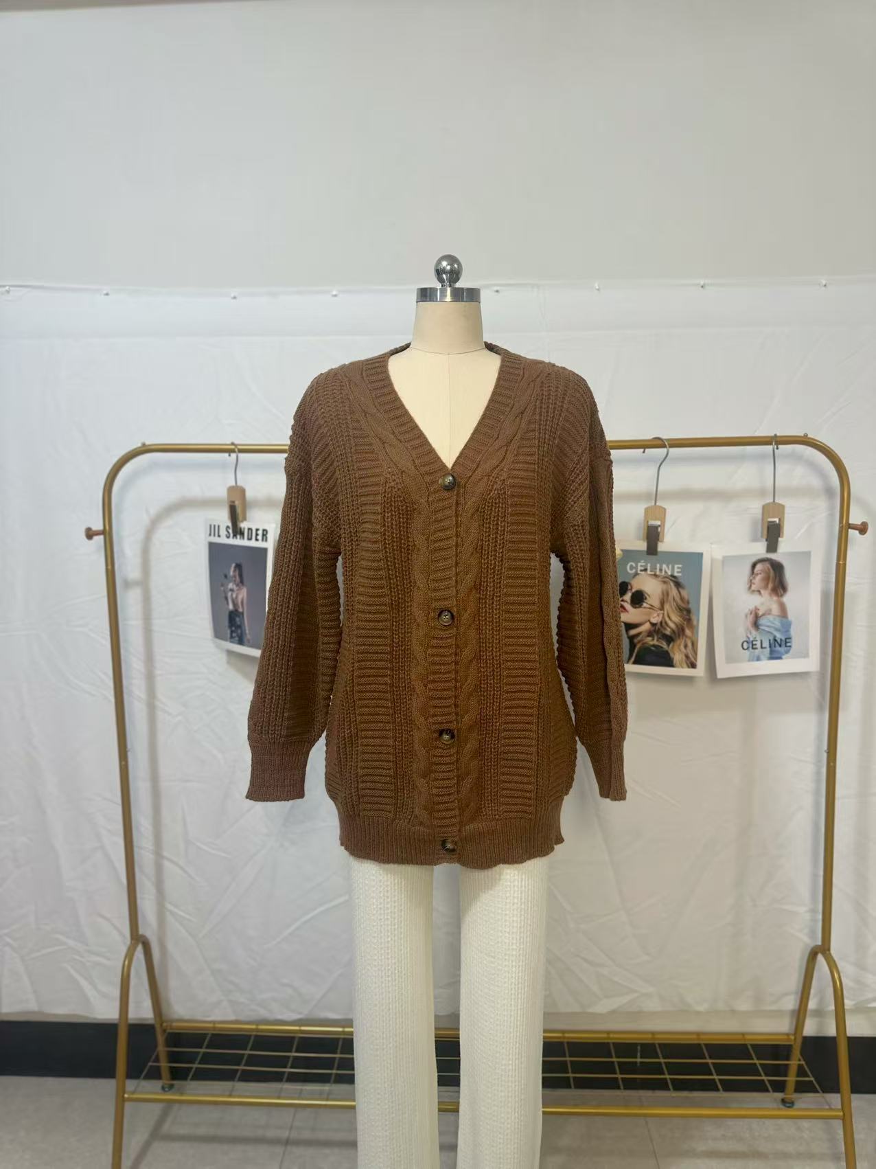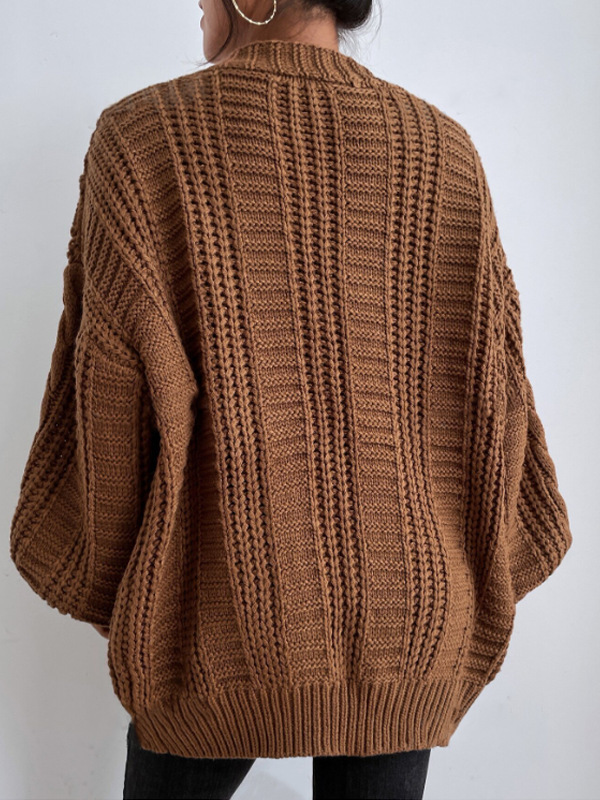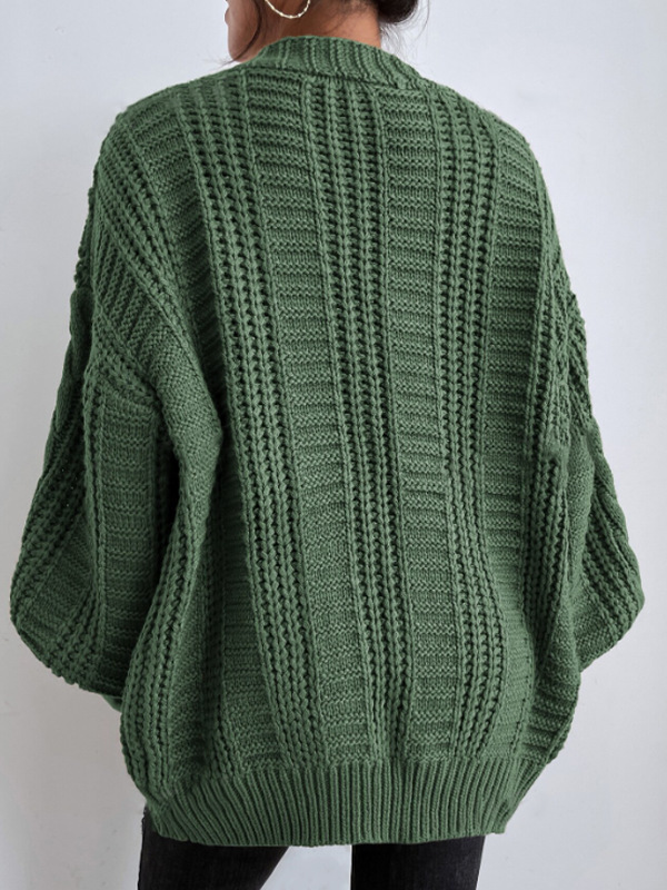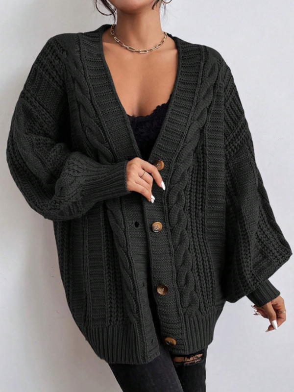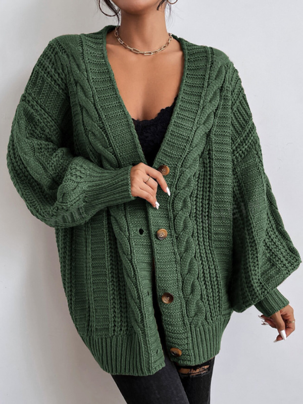 유럽과 미국의 국경 간 대외 무역 V 넥 스웨터 여성 복고풍 스타일 패션 느슨한 트위스트 랜턴 슬리브 카디건 니트 자켓