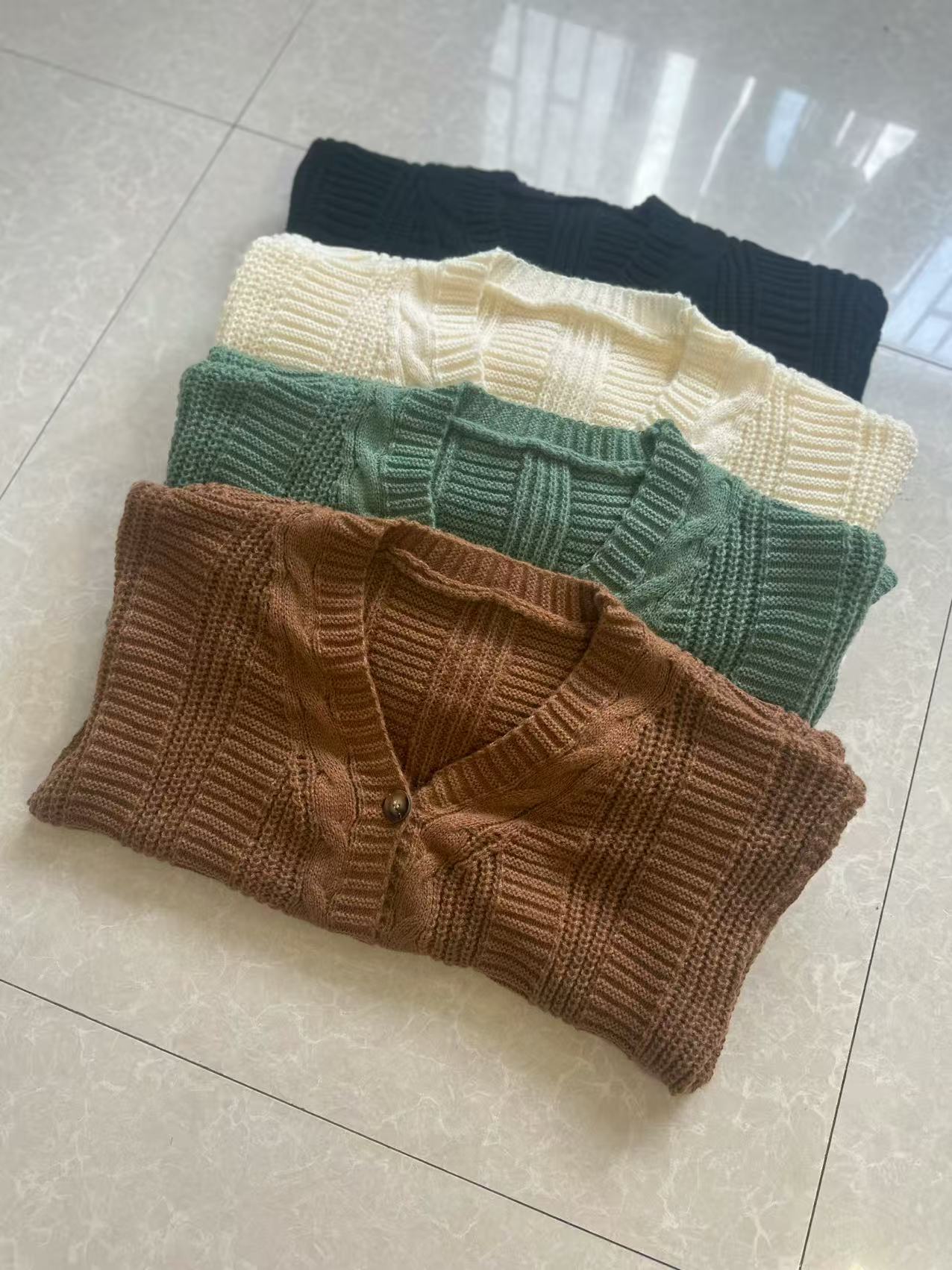 유럽과 미국의 국경 간 대외 무역 V 넥 스웨터 여성 복고풍 스타일 패션 느슨한 트위스트 랜턴 슬리브 카디건 니트 자켓스토어 가기