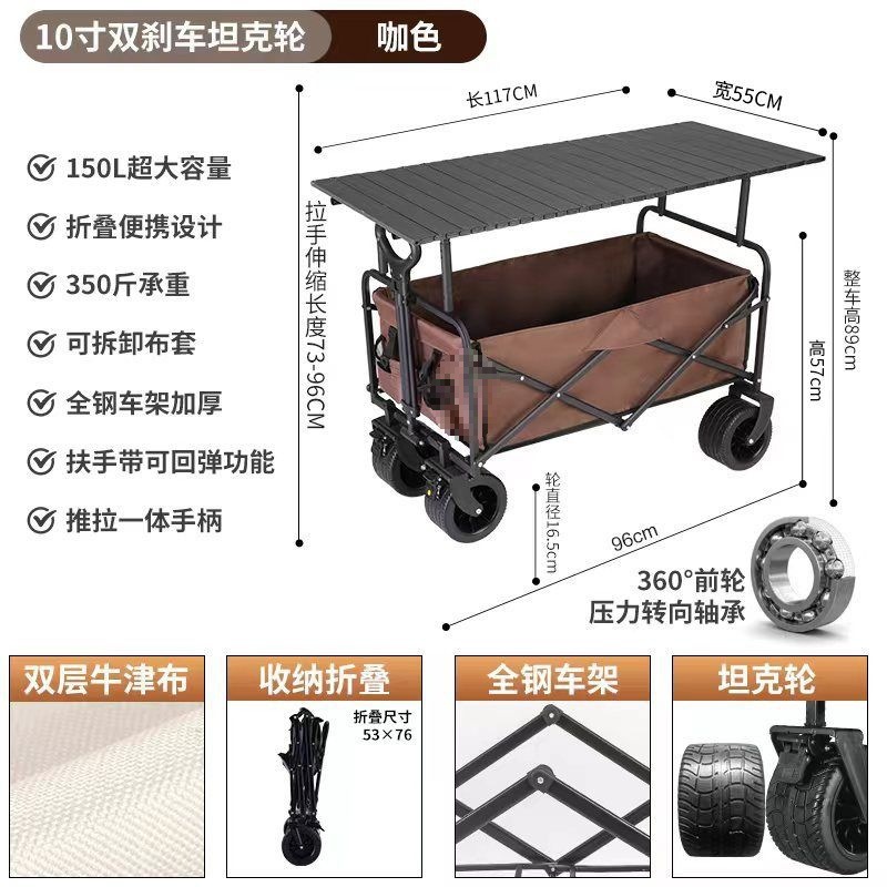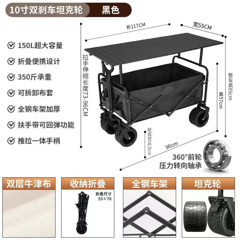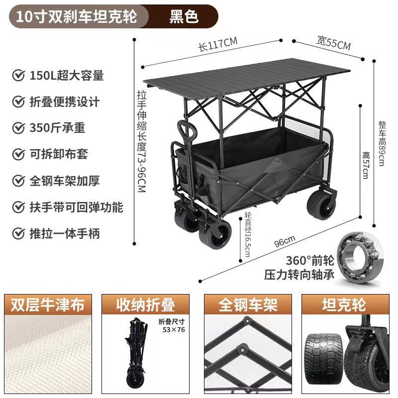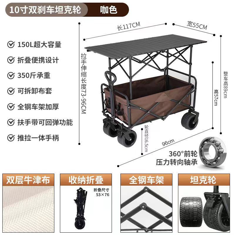 0ra 휴대용 접이식 필드 캠핑카 스톨 테이블 트롤리 피크닉 카트 트레일러 캠핑 리프팅 핸드 트롤리스토어 가기