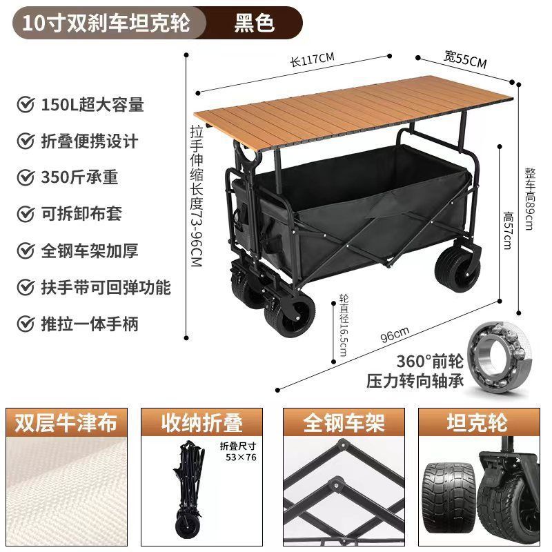 • 900D 더블 레이어 옥스포드 천 가방 블랙 - 10inch 탱크 휠 카트 우드 그레인 1.1m 테이블