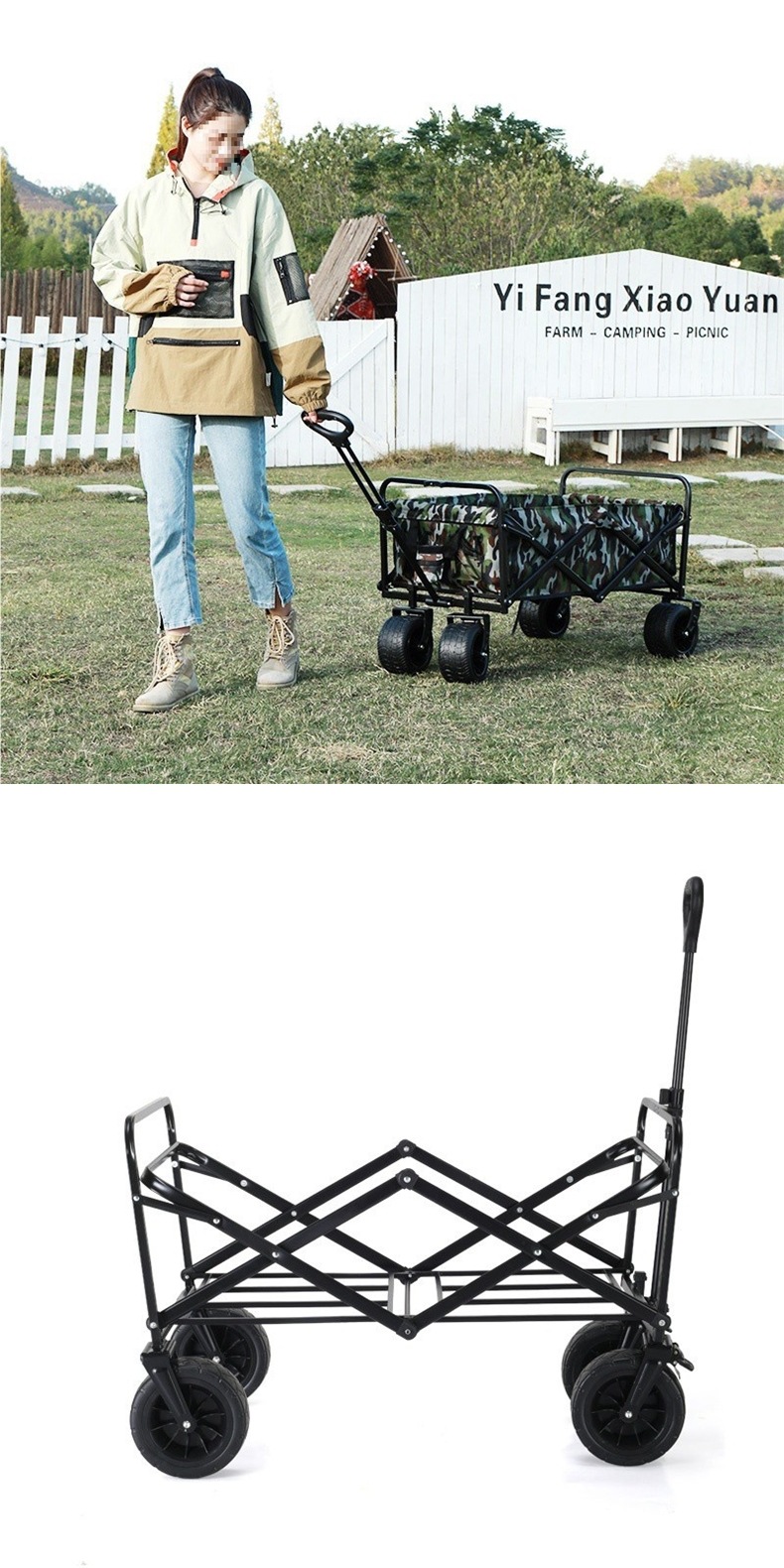 0ra 휴대용 접이식 필드 캠핑카 스톨 테이블 트롤리 피크닉 카트 트레일러 캠핑 리프팅 핸드 트롤리