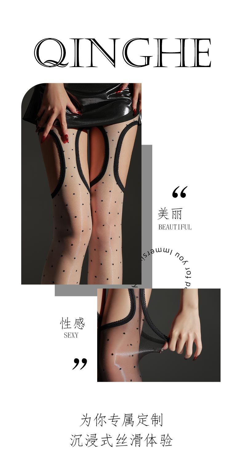 오로라 웨이브 도트 오일 스타킹 가짜 서스펜더 양면 중공 여성 도트 얇은 여름 섹시한 검은 실크 팬티 스타킹스토어 가기