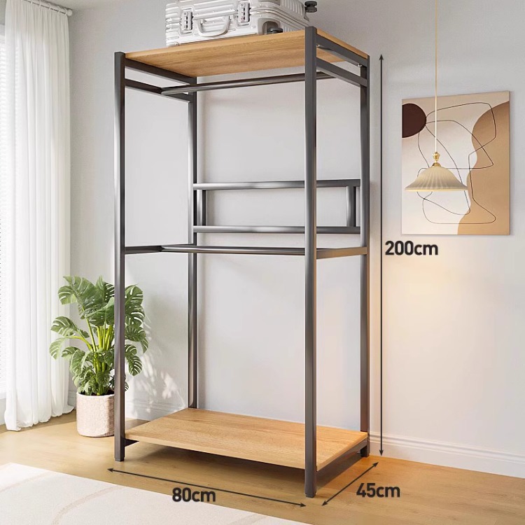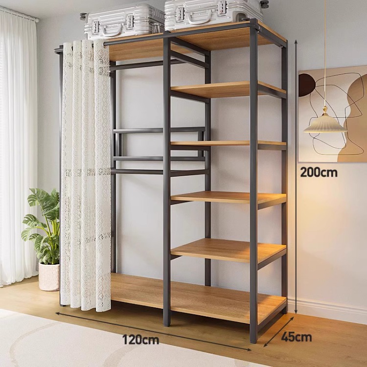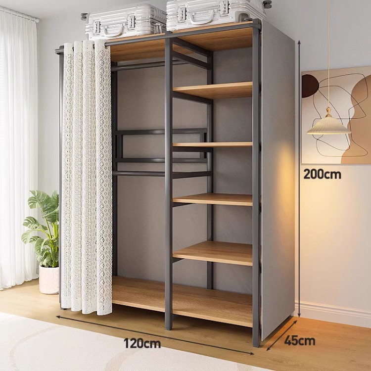 • [커튼 없는 모델 C] 80*45*200-블랙 프레임 스틸과 목재 조합