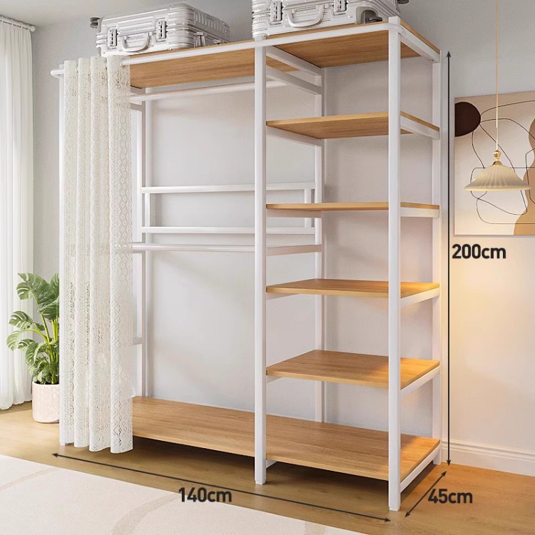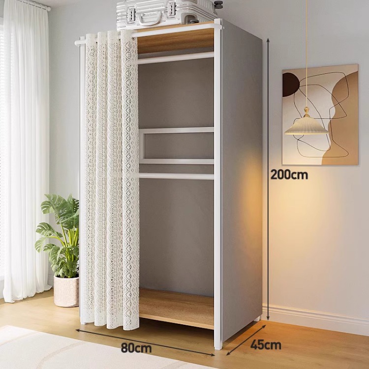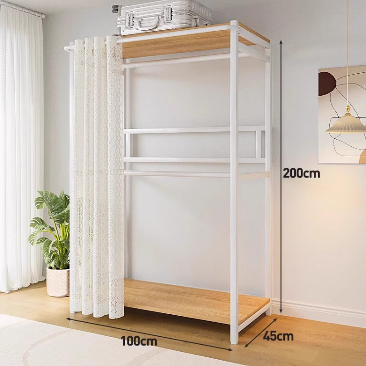 • [커튼 없는 모델 C] 80*45*200-화이트 프레임 철재 목재 조합