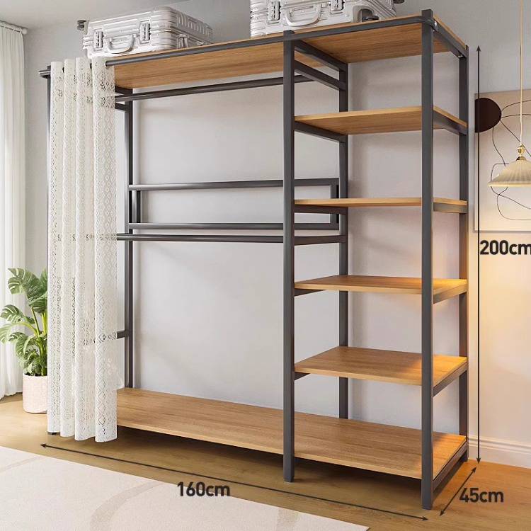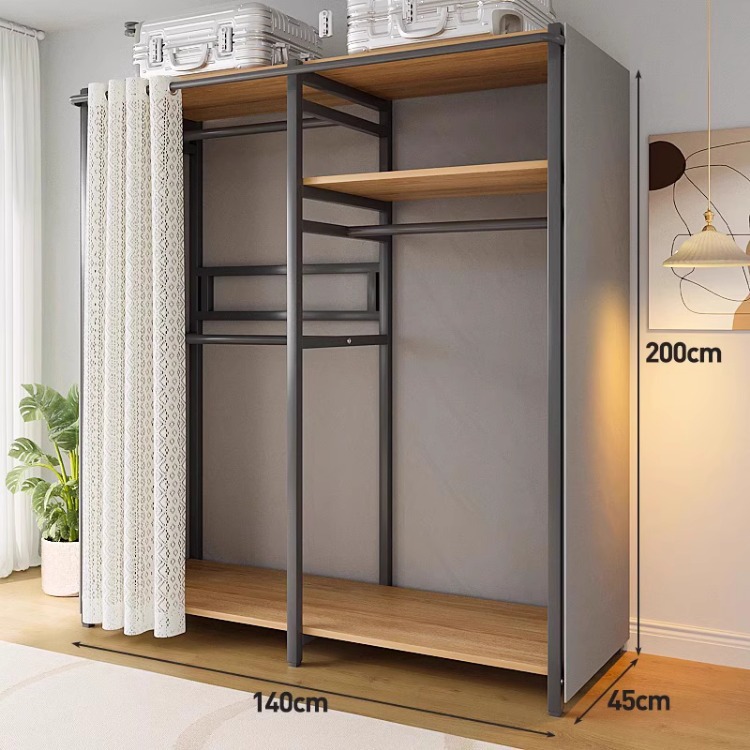 간단한 옷장 침실 홈 옷장 선반 코너 옷장 강력하고 내구성이 뛰어난 개방형 조립 금속 옷장