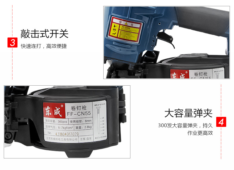 Dongcheng 공압 네일 건 FF-CN55/70 목공 에어 네일 건 장식 도구 네일 슈팅 네일 건