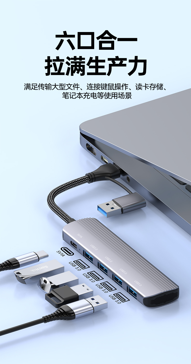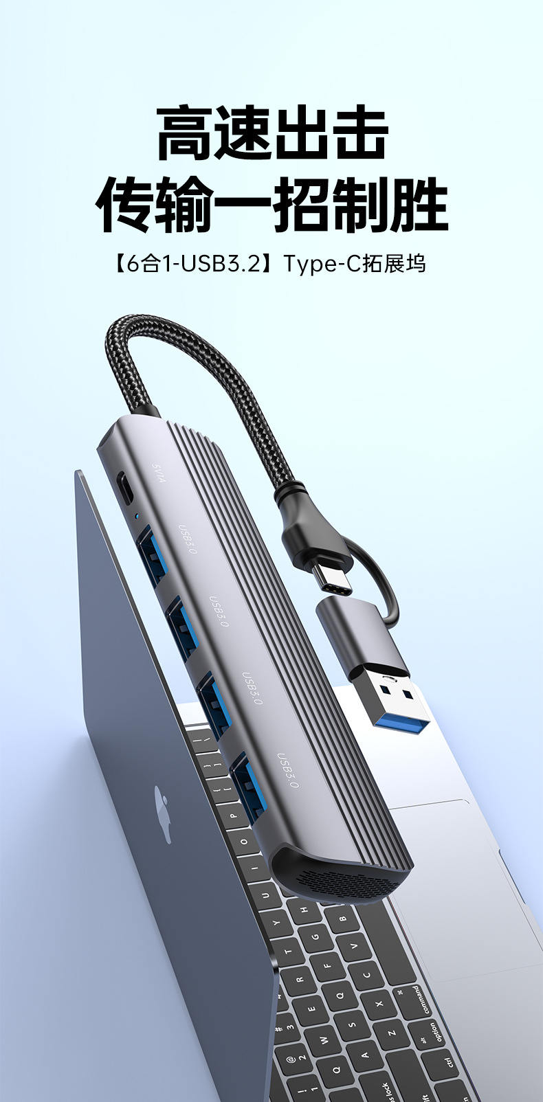USB 인터페이스 확장기 더블 헤드 6-in-one USB 도킹 스테이션 허브 허브 변환기 typec 포트 어댑터스토어 가기