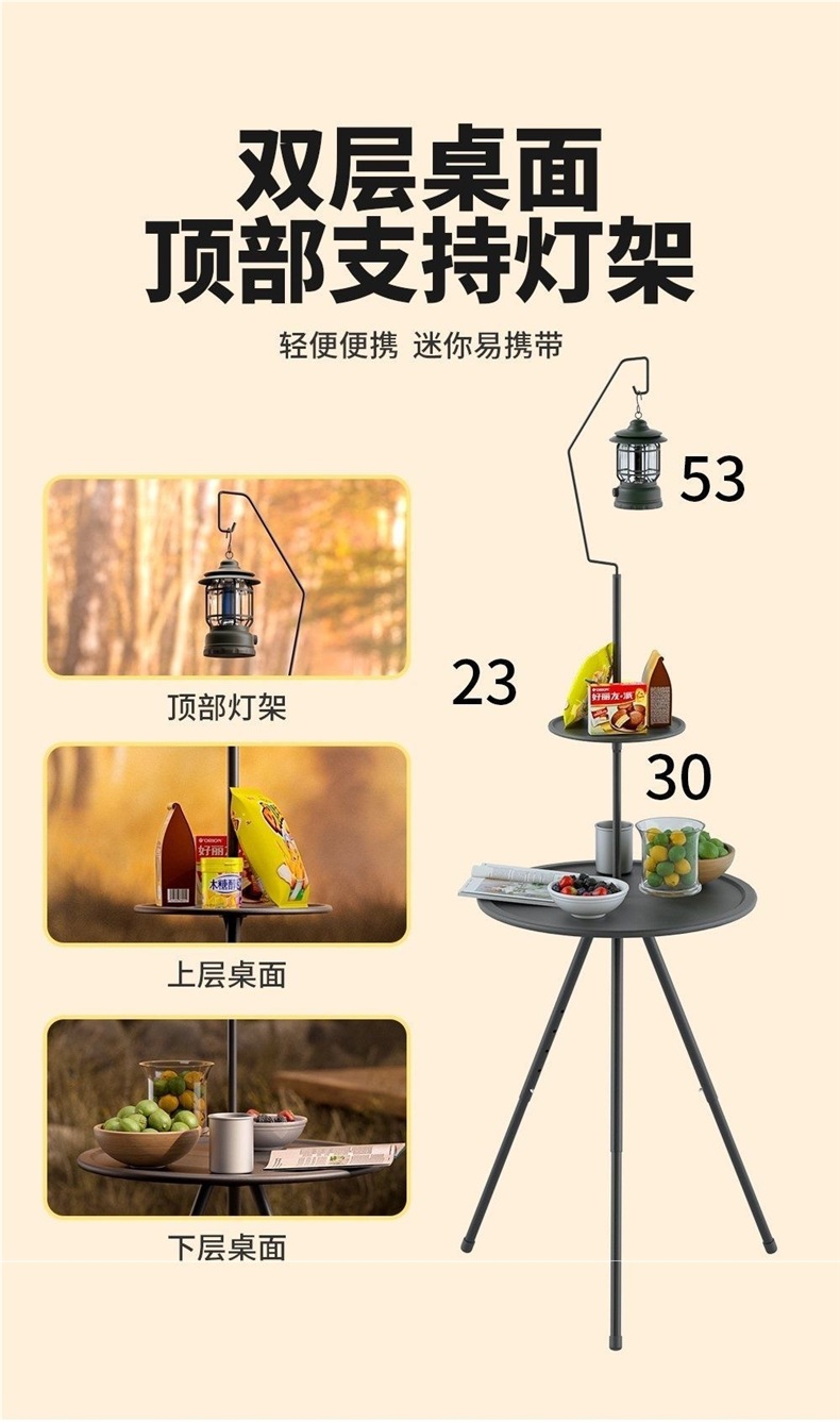 야외 접이식 캠핑 테이블, 휴대용 소형 원형 테이블, 피크닉 캠핑 장비, 커피 테이블, 조명 스탠드가 있는 이중층 리프팅 테이블