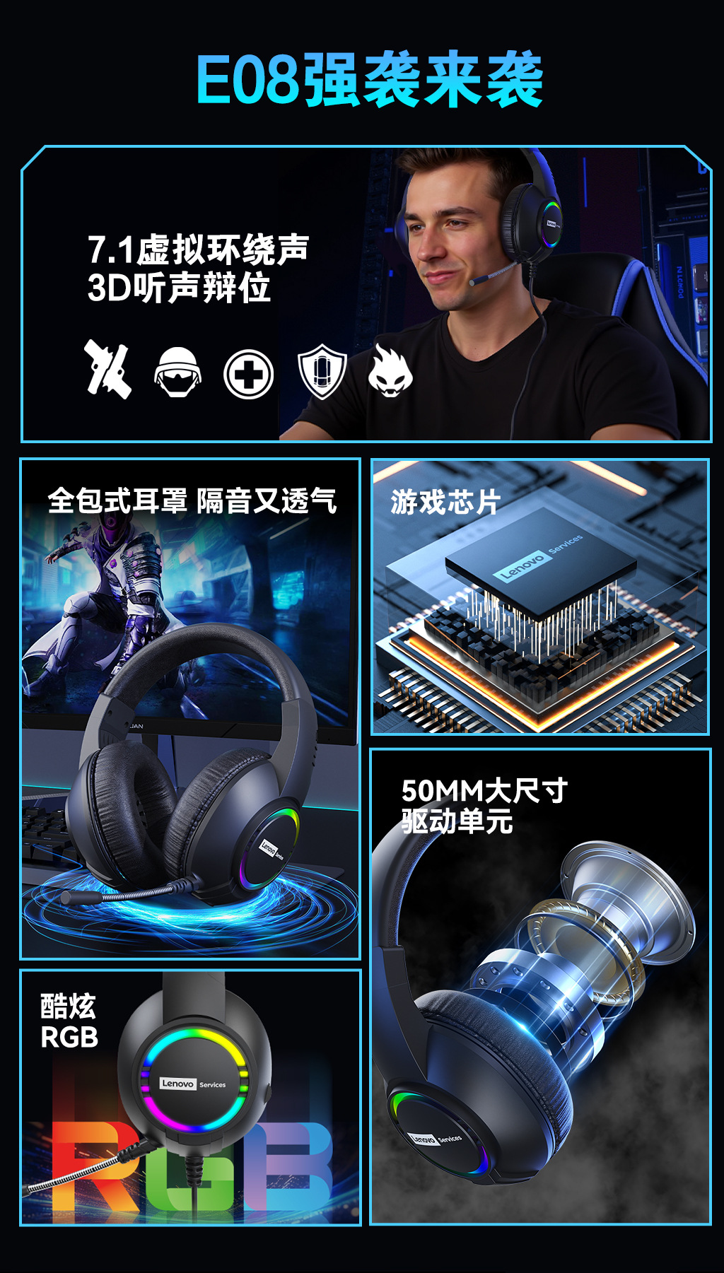 정품 E08 헤드셋 데스크탑 새로운 유선 컴퓨터 노트북 USB e-스포츠 게임용 헤드셋(마이크 포함)스토어 가기