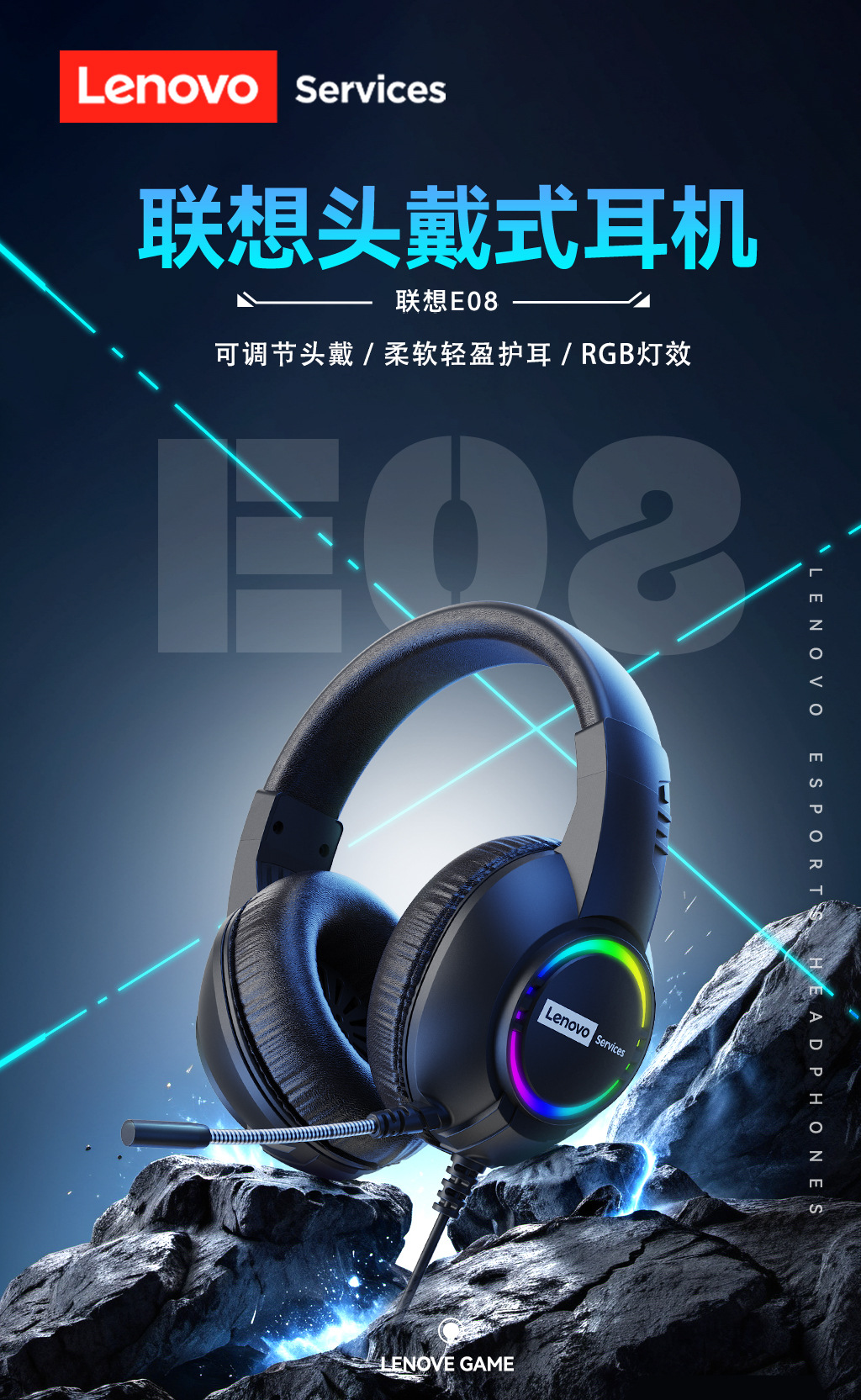 정품 E08 헤드셋 데스크탑 새로운 유선 컴퓨터 노트북 USB e-스포츠 게임용 헤드셋(마이크 포함)