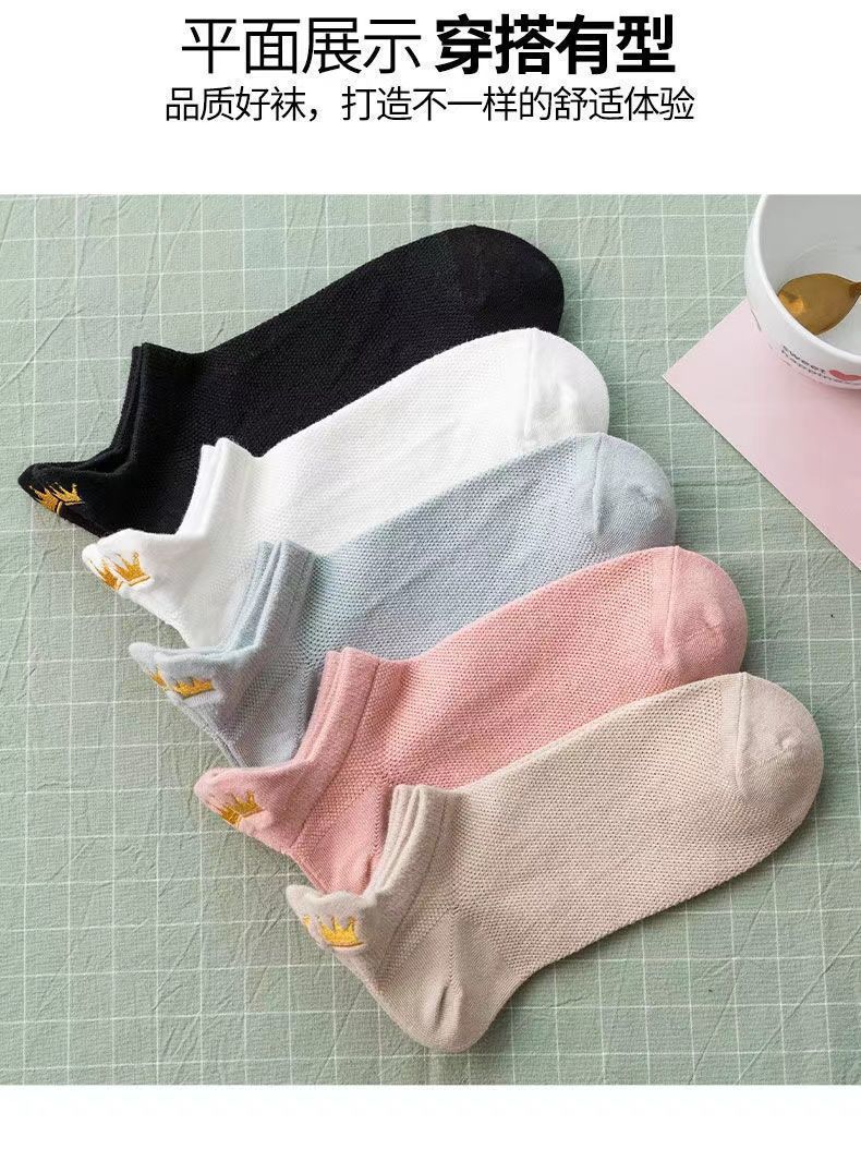 크라운 보트 양말 여성 메쉬 양말 여름 얇은 유행 얕은 입 짧은 양말 자카드 자수 탈취제 통기성 여성 양말