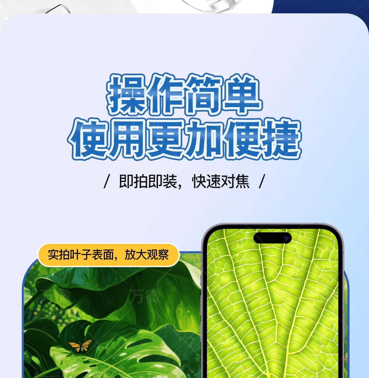 • [새로운 스타일] 미니 휴대용 현미경 + 끈 + 휴대폰 클립