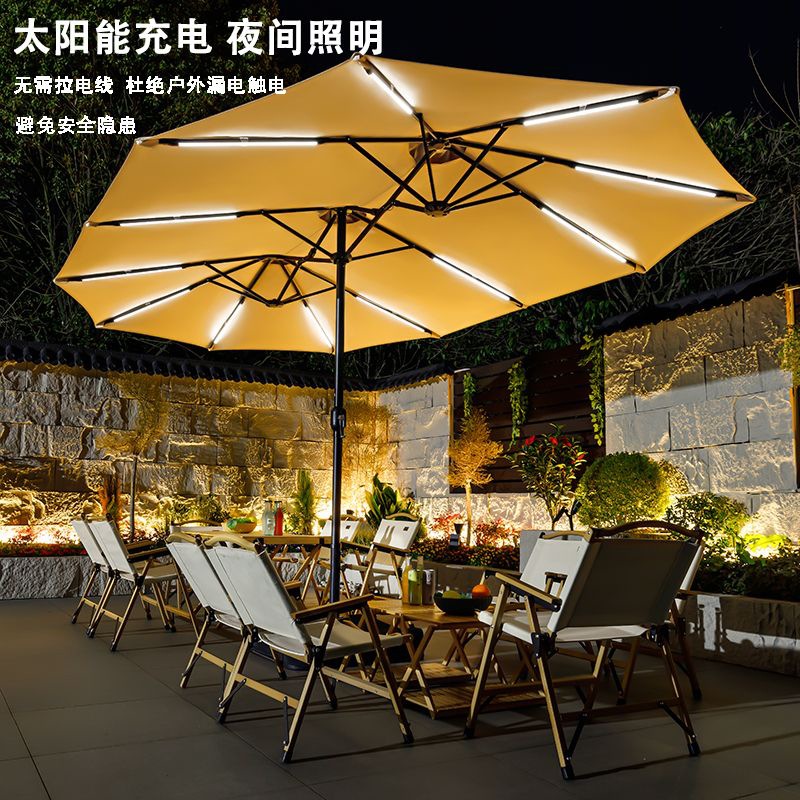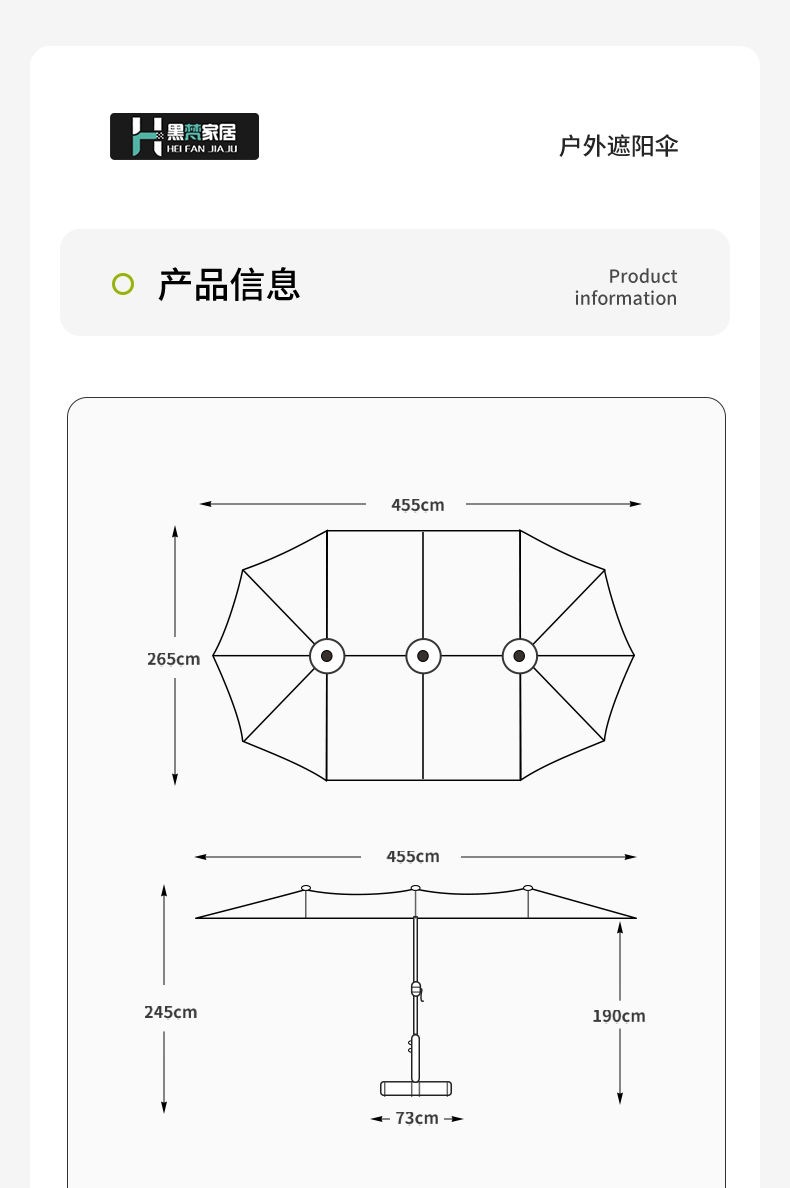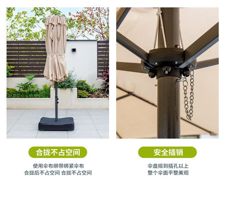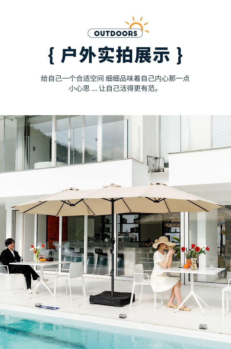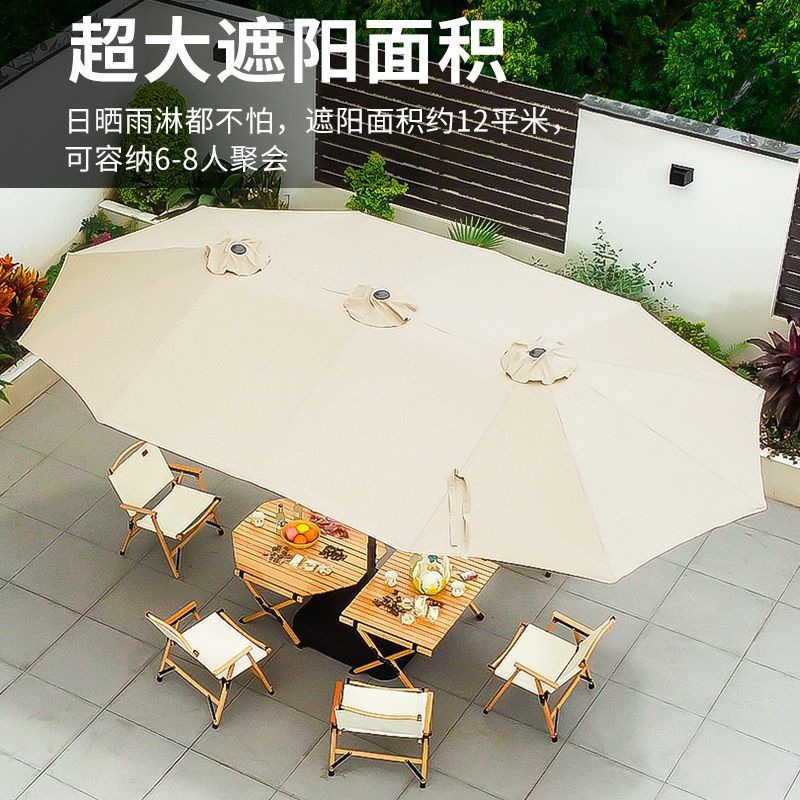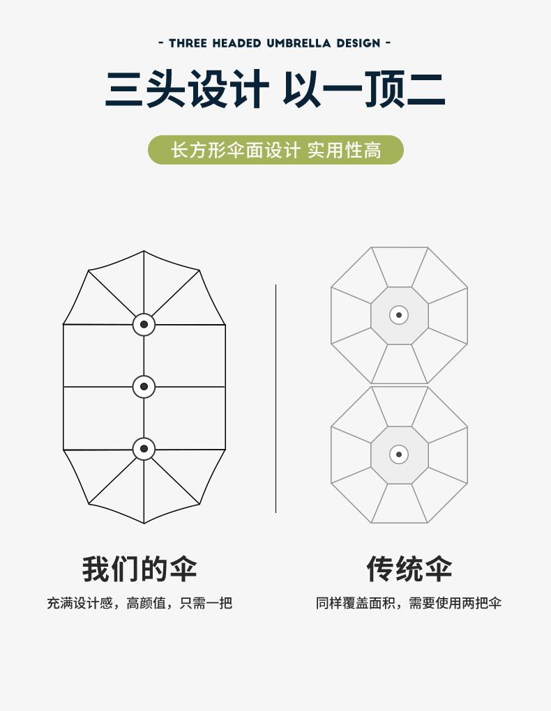 Heifan 야외 파라솔 안뜰 3 헤드 우산 대형 우산 테라스 정원 발코니 노점 바람과 비, 태양 보호