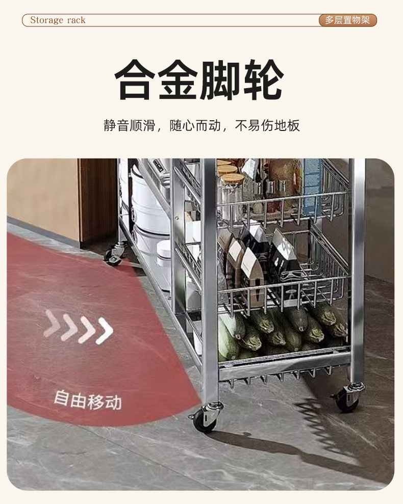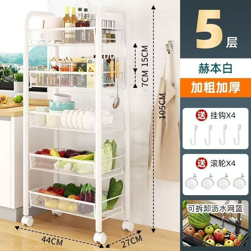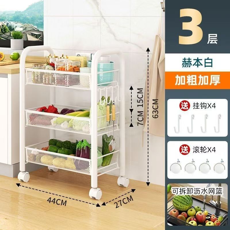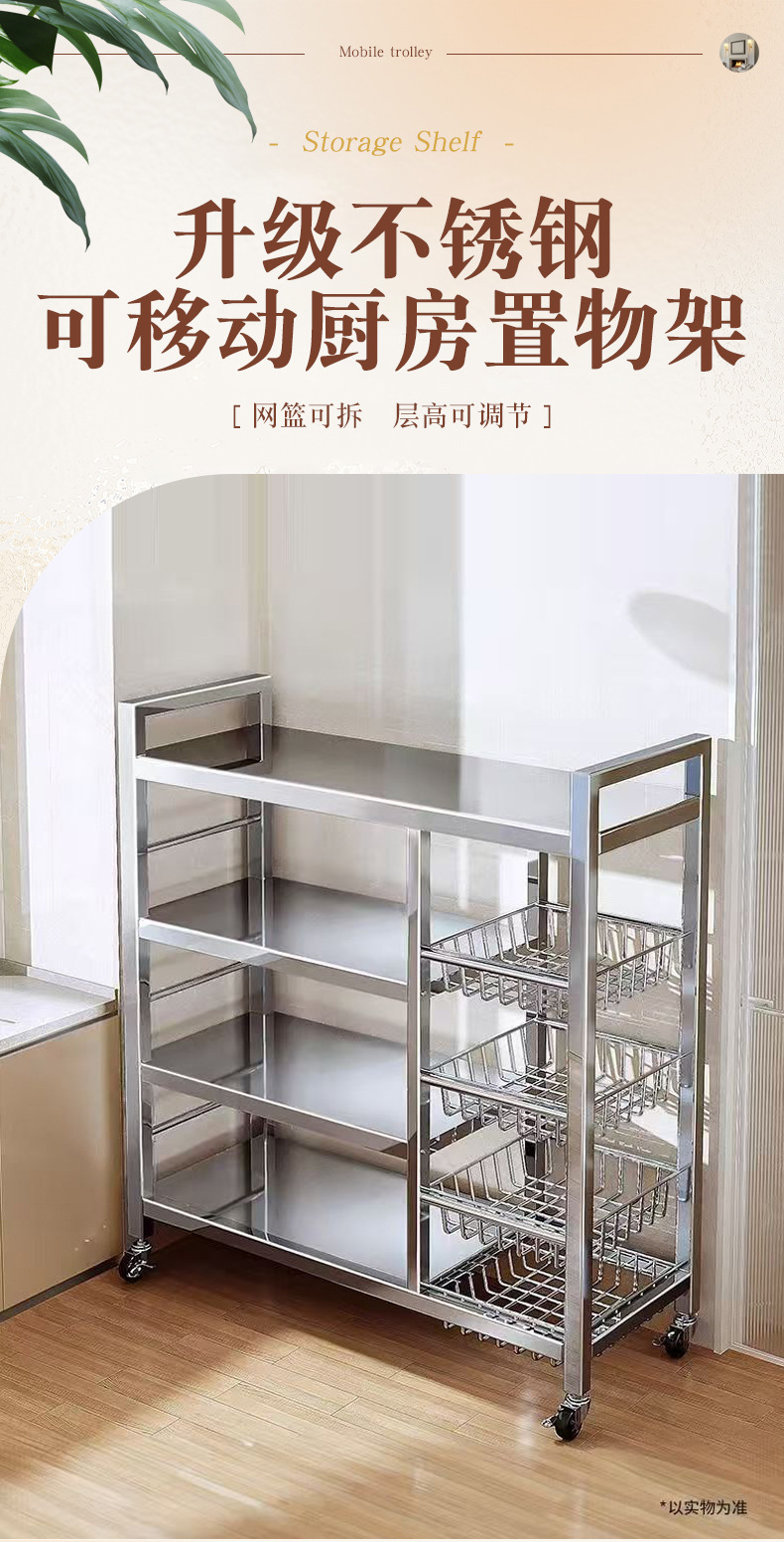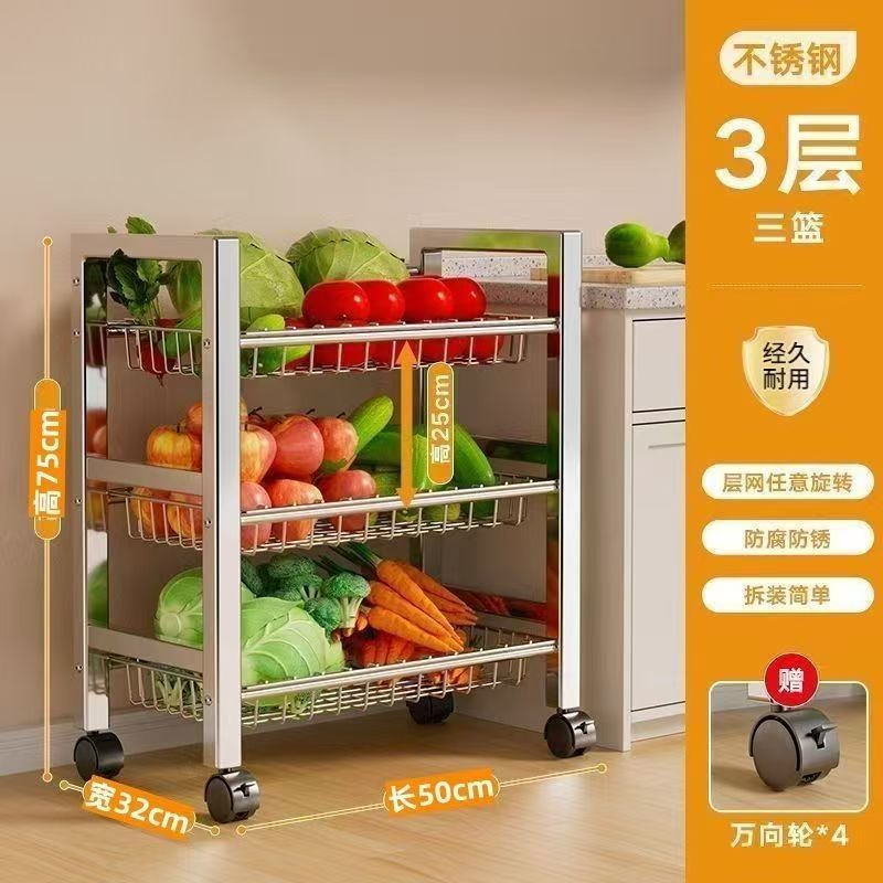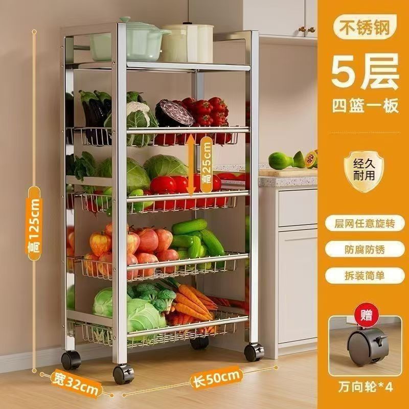 두꺼운 스테인레스 스틸 주방 야채 바구니 보관 랙 바닥에 놓인 다층 전자 레인지 보관 랙 냄비 다기능 랙