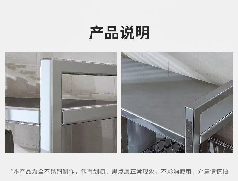 두꺼운 스테인레스 스틸 주방 야채 바구니 보관 랙 바닥에 놓인 다층 전자 레인지 보관 랙 냄비 다기능 랙스토어 가기