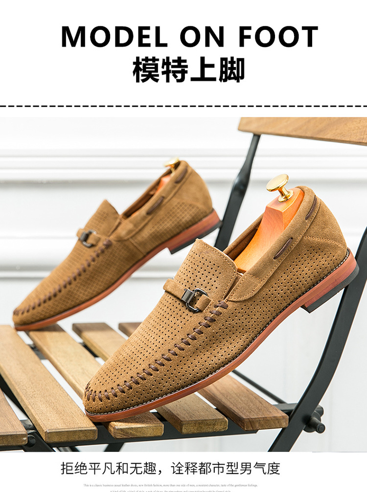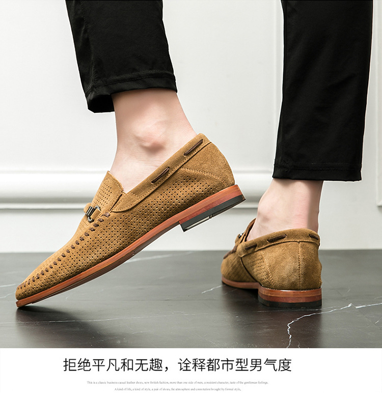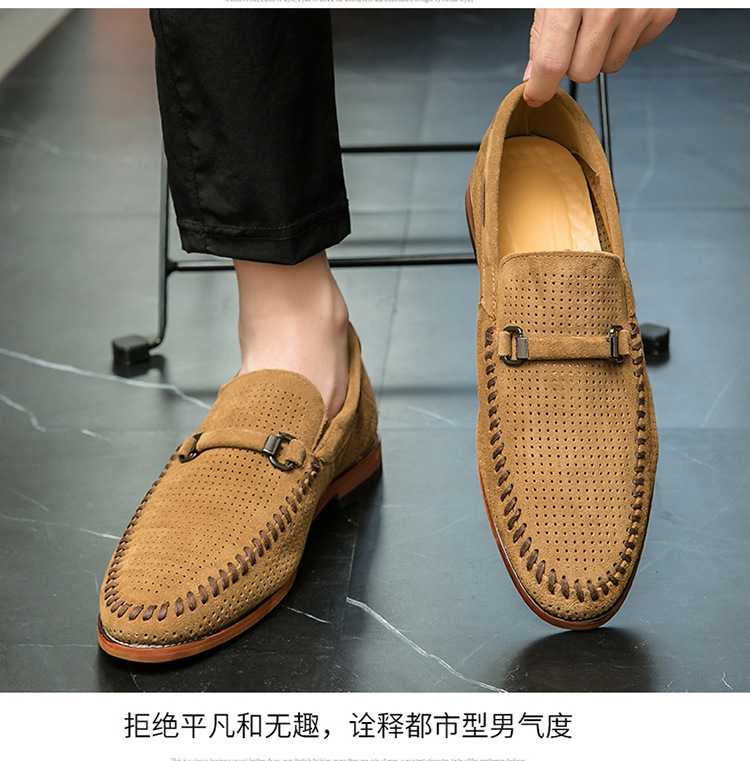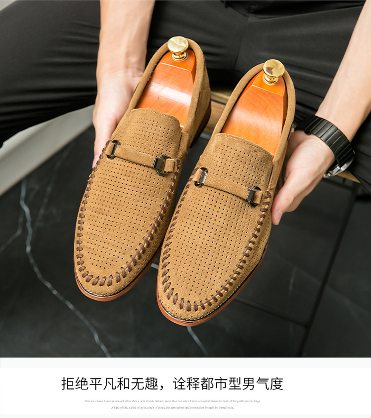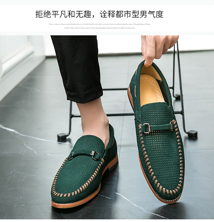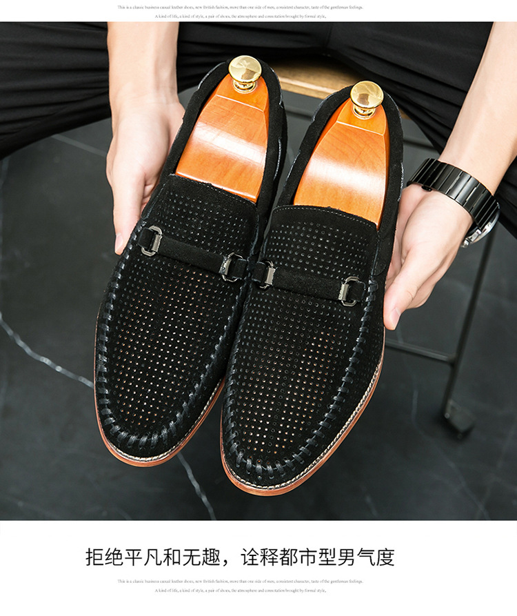 정품 가죽 대형 비니 신발 비즈니스 로퍼 남성 펀칭 통기성 슬립 온 가죽 신발 남성 영국 정장 게으른 가죽 신발스토어 가기