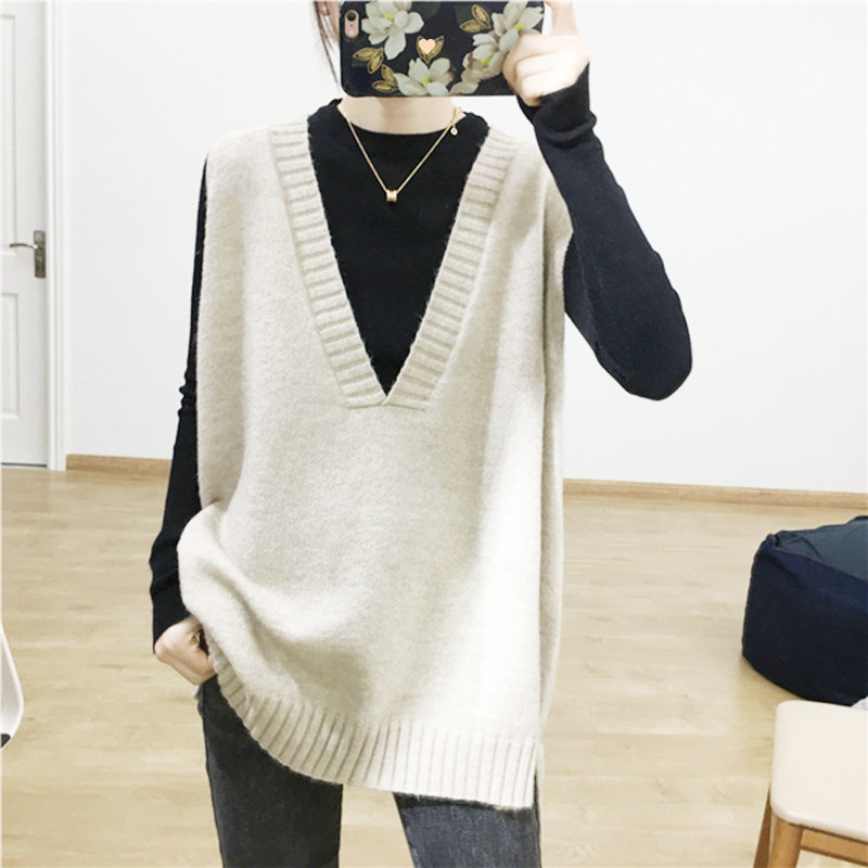 플러스 사이즈 동대문 가을 겨울 여성용 다용도 중간 길이 조끼, 외투 조끼, 게으른 스타일 칼라 니트 조끼