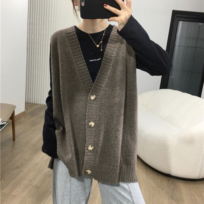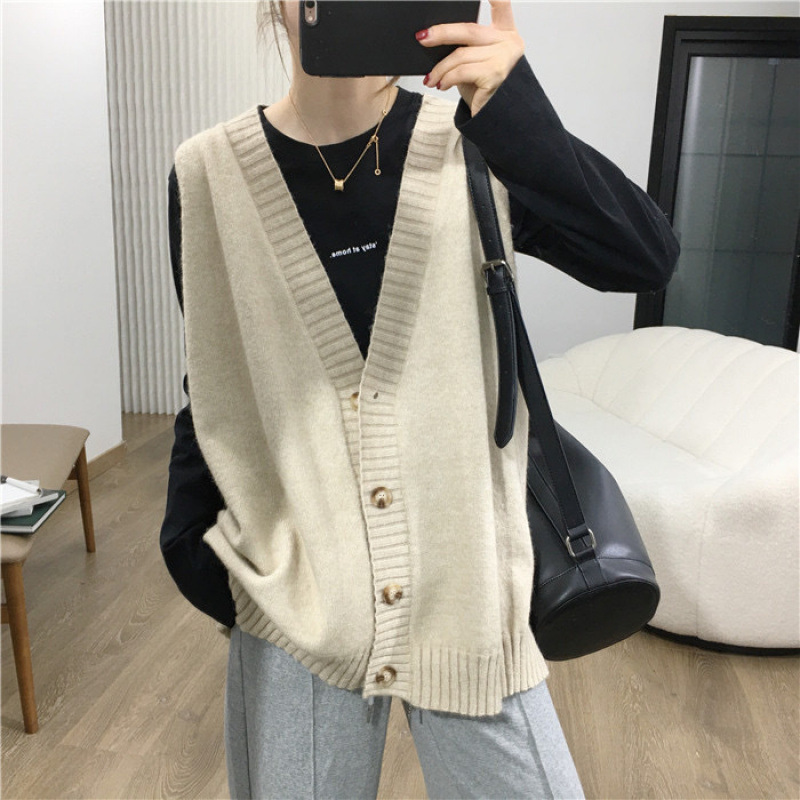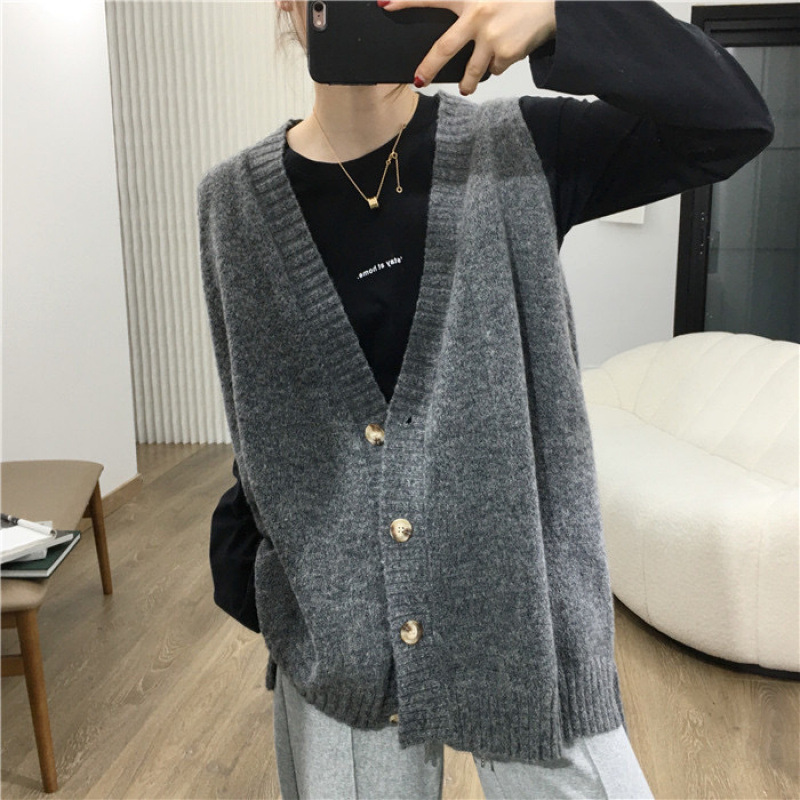 • 가디건 조끼 다크 그레이 루즈 라지 버전 [고품질]