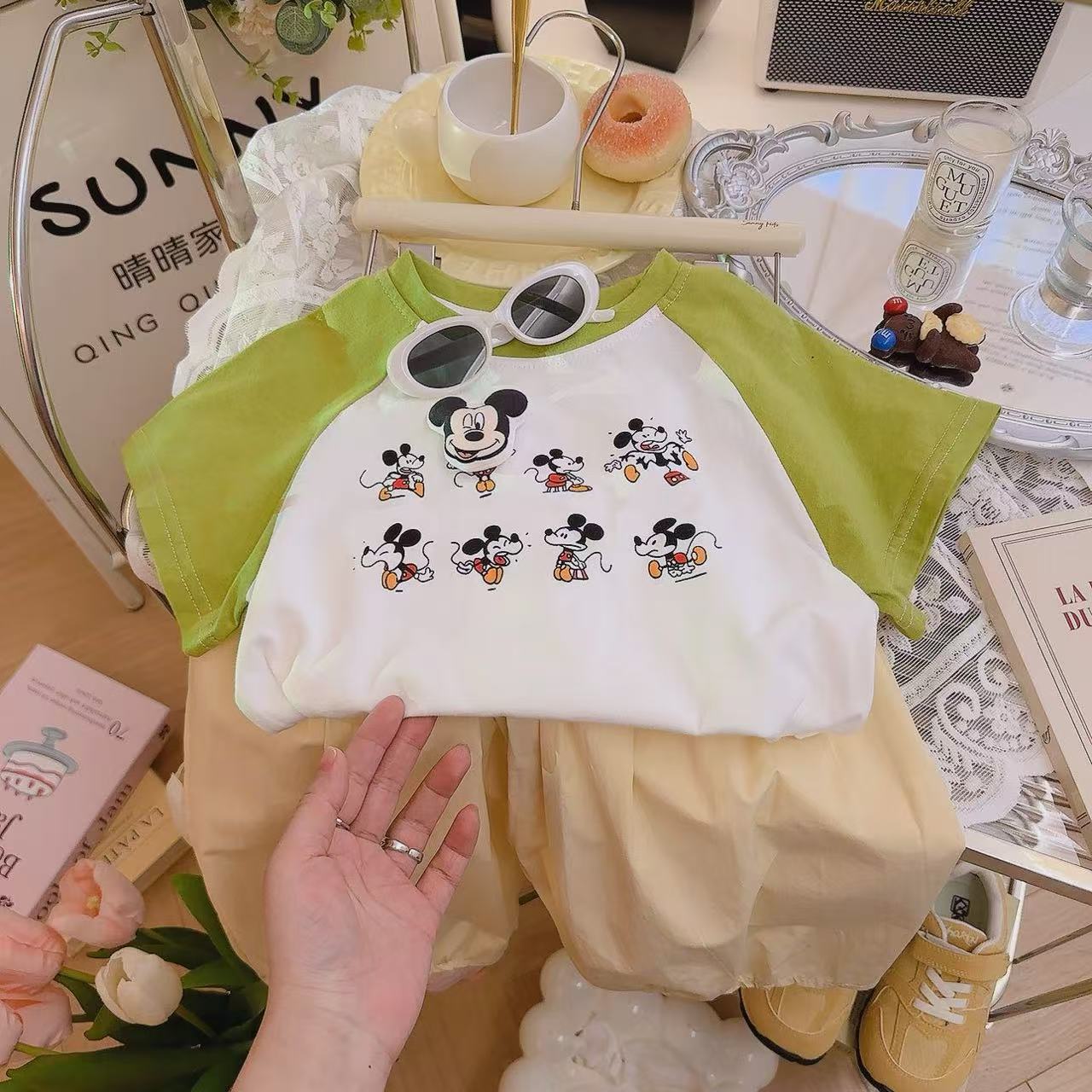 어린이 2025 여름 순수 코튼 라글란 반팔 입체 인형 티셔츠 남성과 여성 아기 한국어 버전 만화 미키 다목적