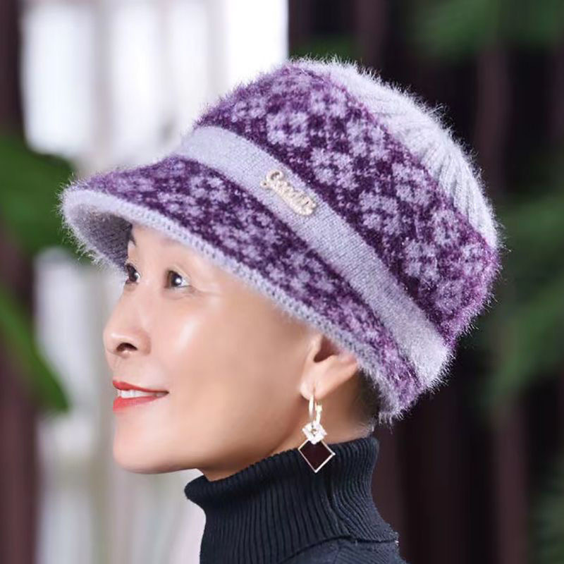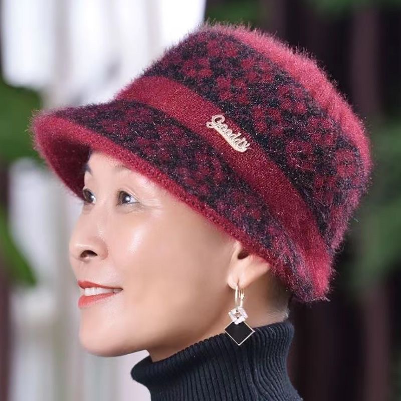 노인을 위한 겨울 엄마 모자, 두껍고 따뜻한 분지 모자, 중년 및 노인 할머니 니트 면 모자, 노부인 모직 모자