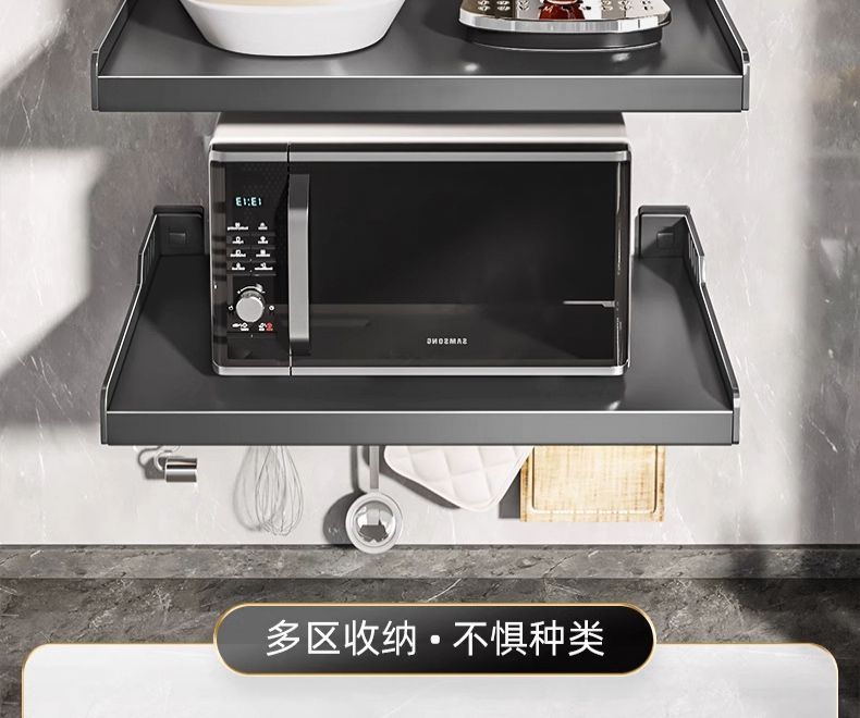 새로운 주방 전자 레인지 보관 다기능 펀치없는 벽 조미료 랙 가정용 벽걸이 형 오븐 랙
