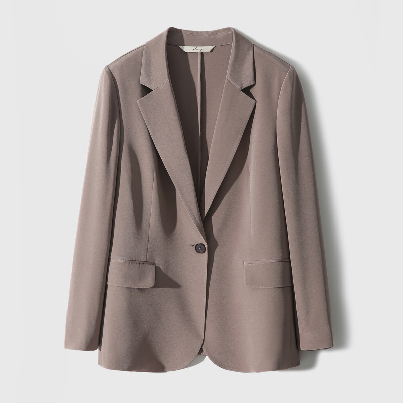 아세테이트 새틴 한국식 루즈 캐주얼 얇은 작은 양복 경량 재킷 통근 전문 여성 봄 여름 오른쪽 어깨