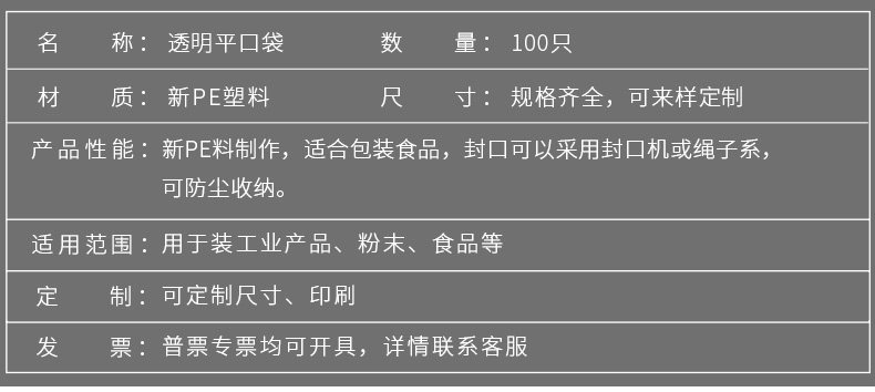 | 20丝透明PE平口袋 | ||||||||