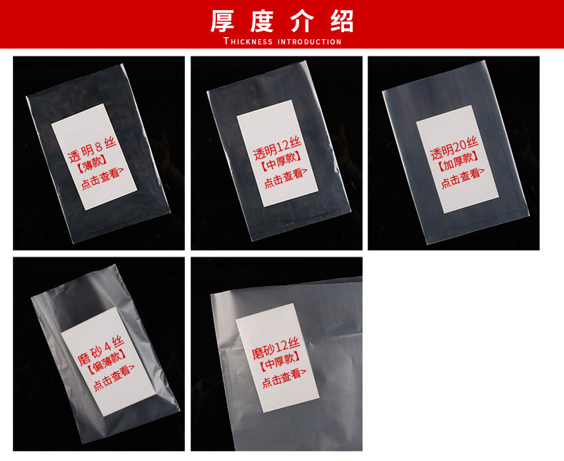 | 7*10厘米*12丝 | 2.10元/100只 | 0.084kg | 100g | 22*32厘米*12丝 | 18.0元/100只 | 0.85kg | 2900g | |